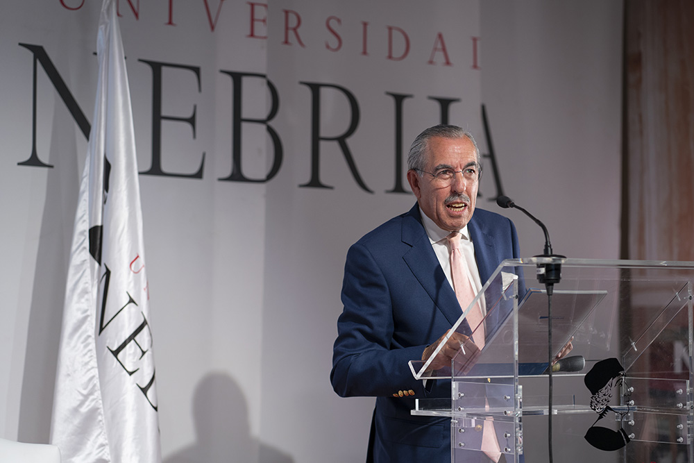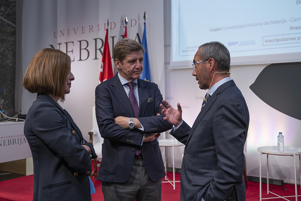 Manuel Villa-Cellino, presidente del Consejo Rector de la Universidad Nebrija, dio la bienvenida a “la universidad de los asturianos, a la universidad del compromiso”. “Estáis en vuestra casa”, añadió. “Lo que queráis saber os lo mostraremos, pero hoy hemos venido a hablar de Asturias”.