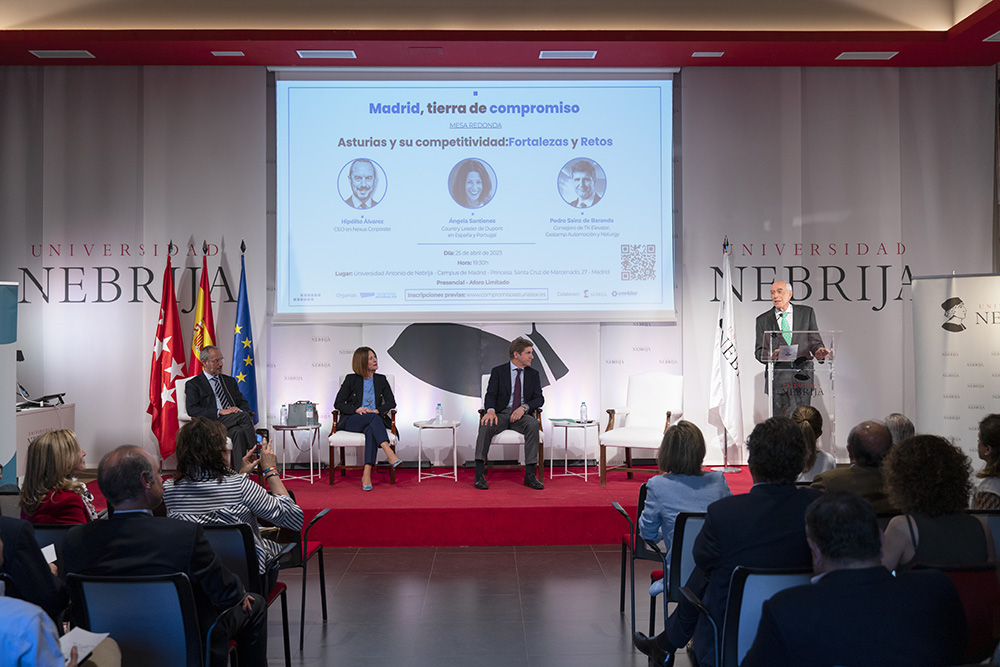 La asociación de utilidad pública Compromiso Asturias XXI celebró el primer acto de su recién estrenada delegación en Madrid. Bajo el título Asturias y su competitividad: fortalezas y retos, el Campus de Madrid-Princesa de la Universidad Nebrija albergó una mesa redonda en la que Hipólito Álvarez, CEO en Nexus Corporate; Ángela Santienes, County Leader de Dupont en España y Portugal, y Pedro Sainz de Baranda, consejero de TK Elevator, Gestcamp Automoción y Naturgy, debatieron sobre los niveles de competitividad que ostenta el principado. ¿Qué mejoras se pueden o se deben acometer para mejorar su posición? ¿Cómo explorar sus fortalezas y con qué desafíos se van a topar?
