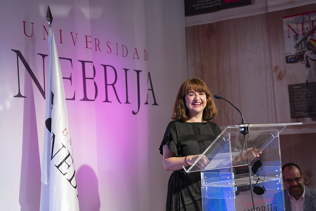 En su discurso, García Rodero evocó sus inicios detrás de la cámara. La época en la que con 25 años recorrió de manera precaria los pueblos de la península. El resultado de ese trabajo fue España oculta, una obra publicada en 1989 que sacó a la luz fiestas, ritos y tradiciones españolas casi olvidadas. España oculta fue su consagración nacional e internacional. “Si yo no hubiera tenido esa pasión por mi trabajo os aseguro que no lo hubiera conseguido. Cuando flaqueaba me decía a mí misma ‘yo puedo con esto’. Aprovechad la juventud para aprender de vuestros profesores, A veces de la Universidad te quedas con el nombre de tres profesores, o con uno, pero ese es el que le da sentido a todo”, recalcó en su discurso al recoger uno de los Premios Nebrija Crea.