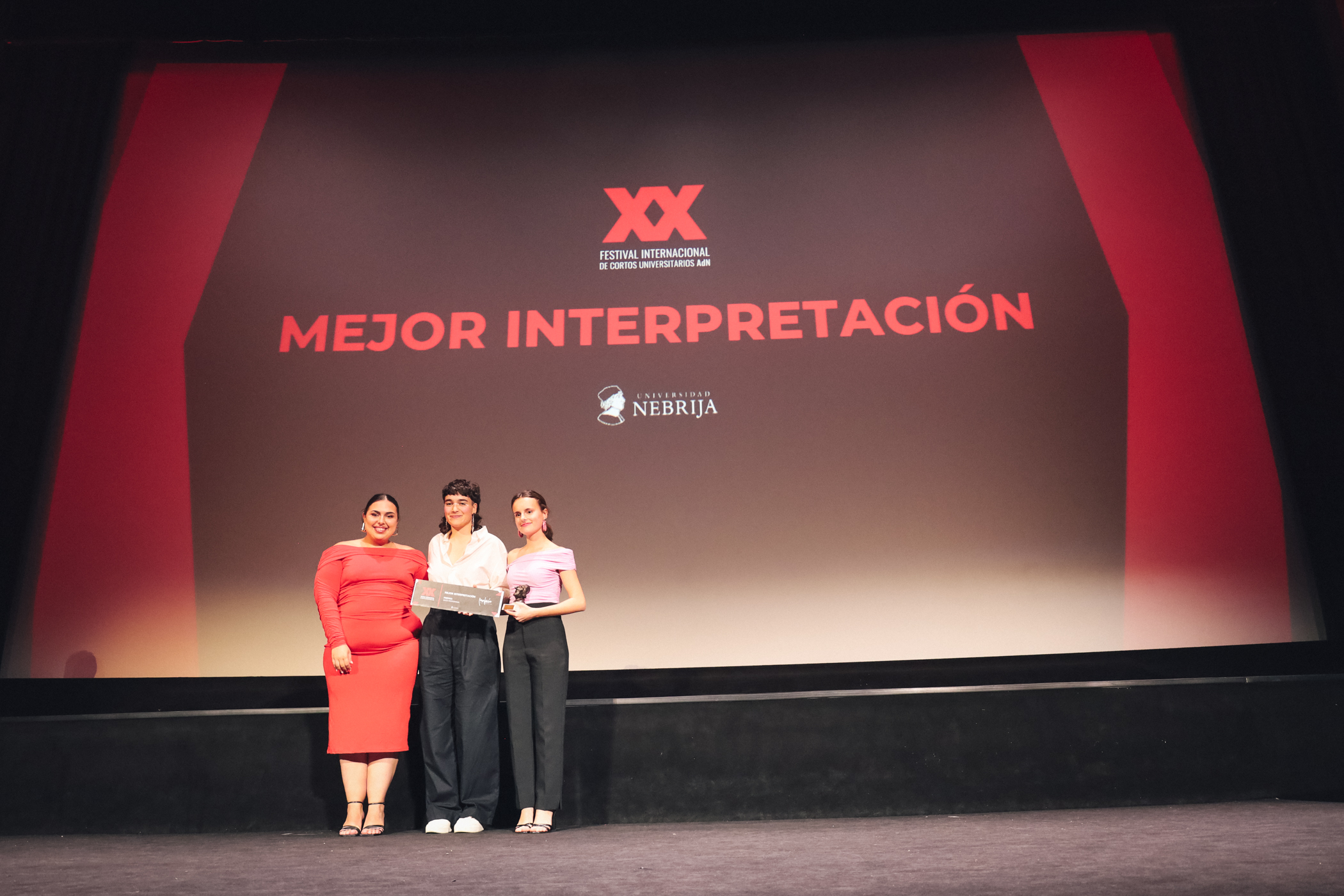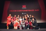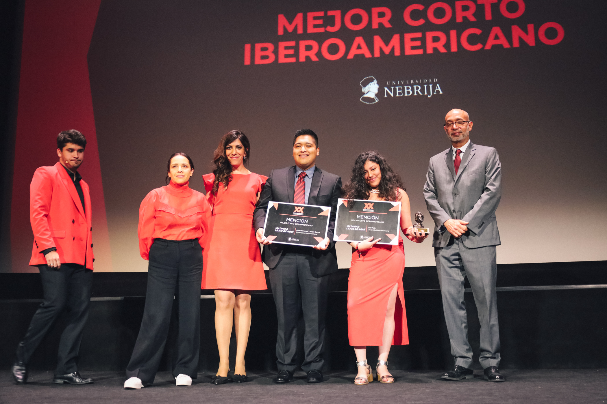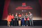Tras la exhibición de los cortos finalistas llegó la hora de la entrega de premios. El primero fue para el Mejor Corto Iberoamericano Un lugar lejos de aquí de César Carrera y Sarai Adán, estudiantes de la Universidad Iberoamericana.