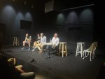 Los alumnos de 3º del Grado en Artes Escénicas han acudido a la representación de la obra Los que hablan en el Teatro del Barrio. Protagonizada por Malena Alterio y Luis Bermejo y escrita y dirigida por Pablo Rosal, la obra pulula por la historia de dos personajes que se citan en el escenario para hablar el uno con el otro. Esta visita forma parte de la actividad dirigida de la asignatura de Técnicas, Estilos y Géneros de Interpretación II que imparte la profesora Nerea Lovecchio Estalayo. Al término de la representación tuvieron un coloquio con el equipo artístico.