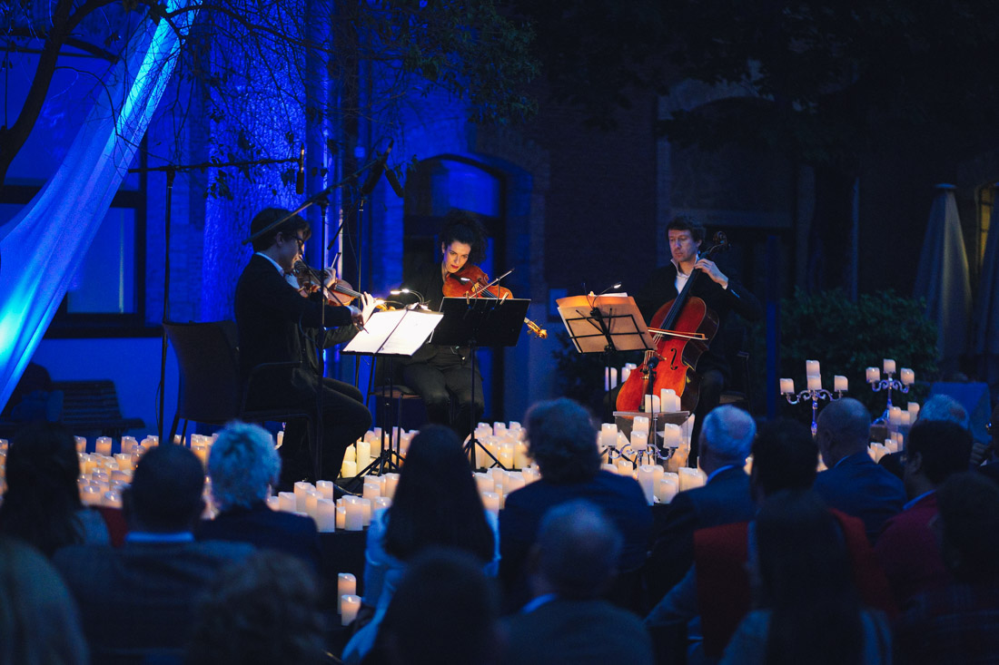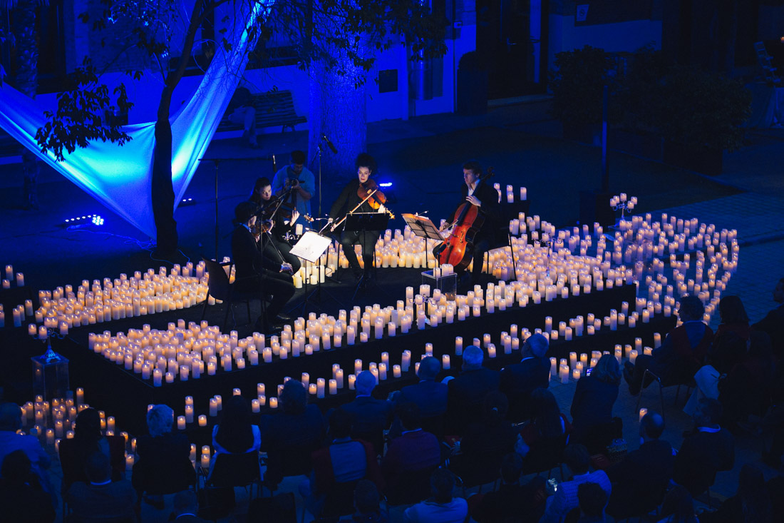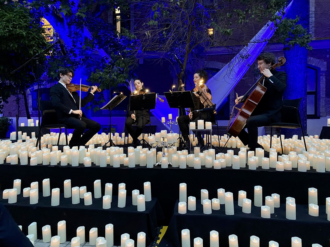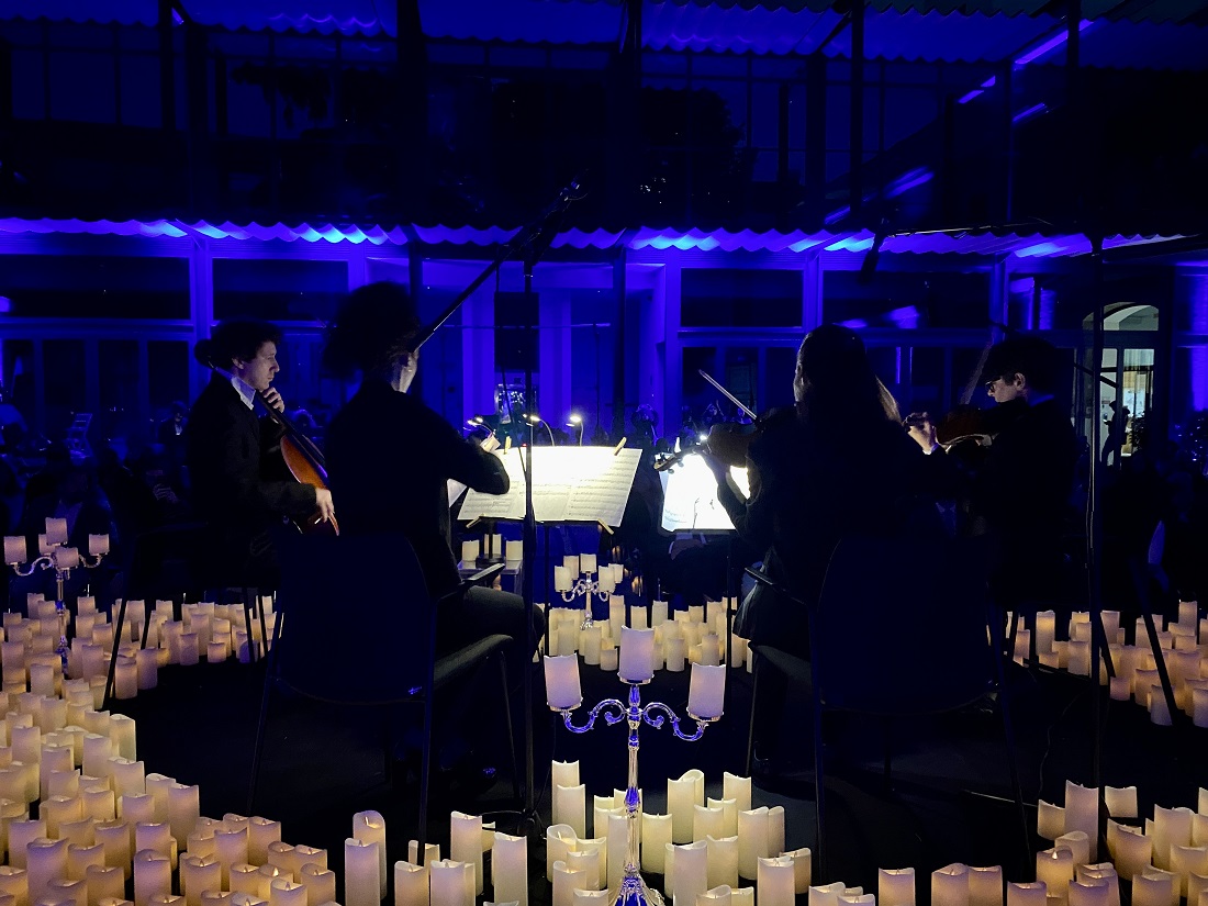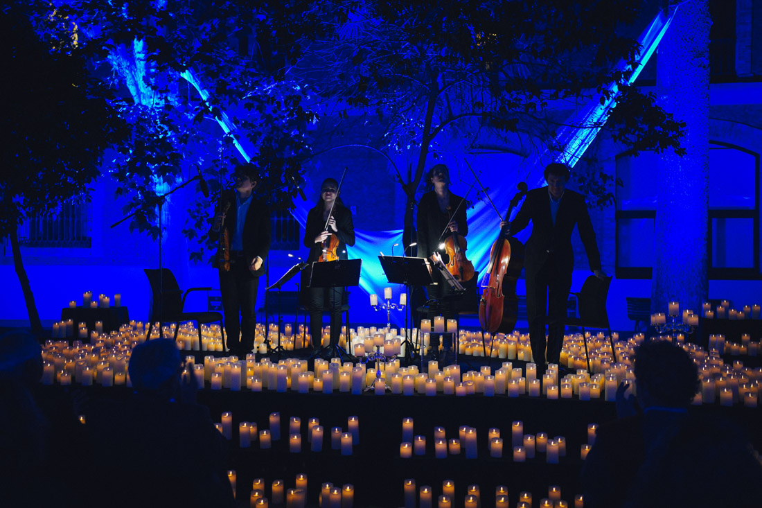 Las palabras se apagan y surge misteriosa la música desde un escenario plagado de velas. Va anocheciendo. Superando inclemencias del viento, el cuarteto de cuerda Matrice viaja por las composiciones de Hans Zimmer en un viaje que incluye el bello Time, de Inception (Origen), una película de ciencia ficción escrita, producida y dirigida por Christopher Nolan. Luego, Mufasa –El Rey León-, Simba y los demás animales de la sabana campan a sus anchas por el patio del campus. Las bandas sonoras van forjando una atmósfera épica e íntima: Madagascar, Dunkirk, The Pacific, The Dark Knight, Wonder Woman, Gladiator, Interstellar, Dune y Sherlock Holmes. El concierto incluye la suite de Los piratas del Caribe, epítome de una experiencia sensorial que actúa de catapulta de los sentimientos de los alumnos que han dejado en Nebrija los mejores años de su vida (y los que les quedan por vivir en una Universidad abierta a sus visitas e iniciativas).