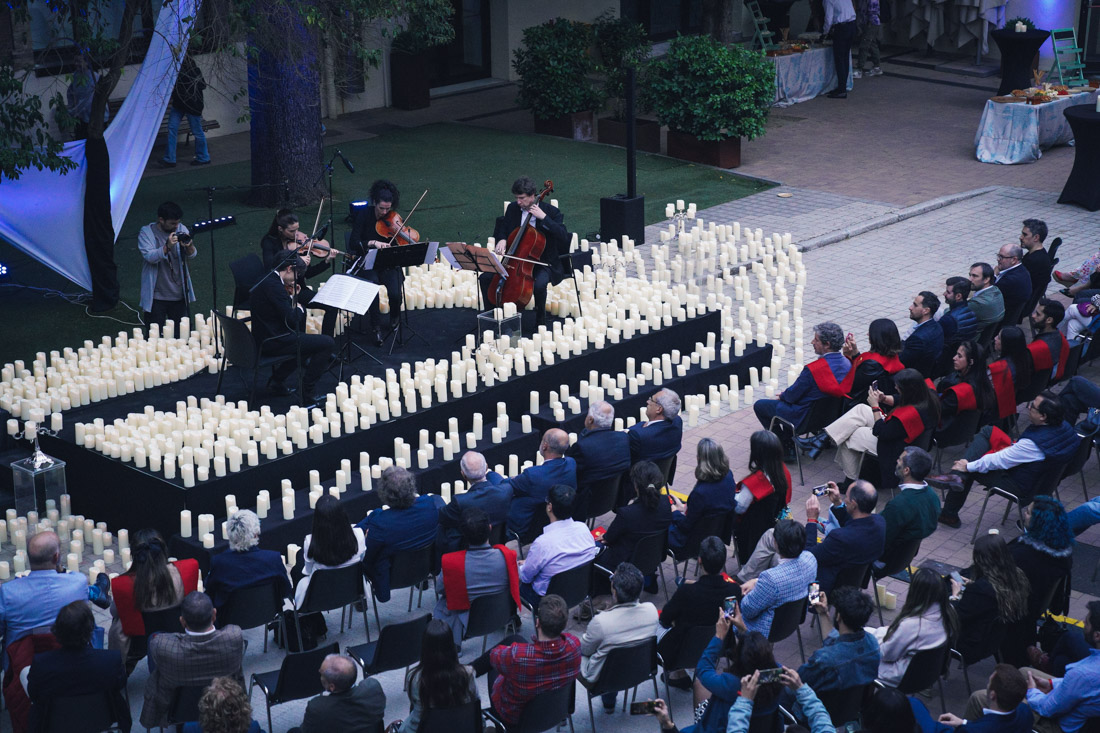 Tres años después, el Alumni Day, la jornada de reencuentro entre amigos y antiguos compañeros de clase, se cuela en la apretada agenda de actos de la Universidad Nebrija. El campus de Madrid-Princesa se enciende con abrazos, emoción, risas y 3000 velas que arropan el concierto de cuerda de Candlelight en Fever que recrea las composiciones más representativas de Hans Zimmer. Las generaciones de 1998 -la primera de todas las que se han graduado- y la de 2013 protagonizan los discursos oficiales y oficiosos veinticinco y diez años después, respectivamente, del comienzo de su andadura de vida académica.