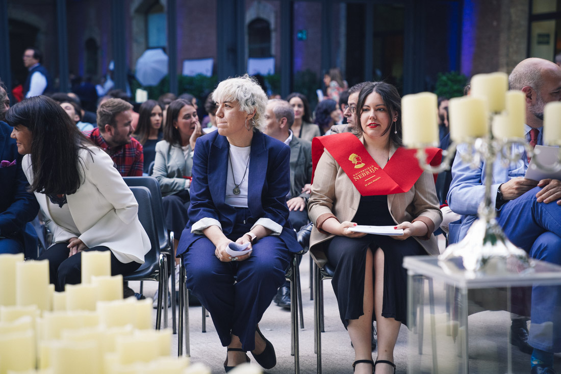 Villa-Cellino recuerda los principios y valores “sencillos” de Nebrija: disfrutar cada día “dando lo mejor de nosotros mismos allí donde estemos”, construir Nebrija con el trabajo de todos, transformar el conocimiento en acción y cultivar, como dice el rector José Muñiz, “la pasión por saber y la pasión por emprender”. Y lanza un último consejo: “Hay que pensar siempre en el futuro que estáis haciendo desde el presente para las generaciones que vienen”.