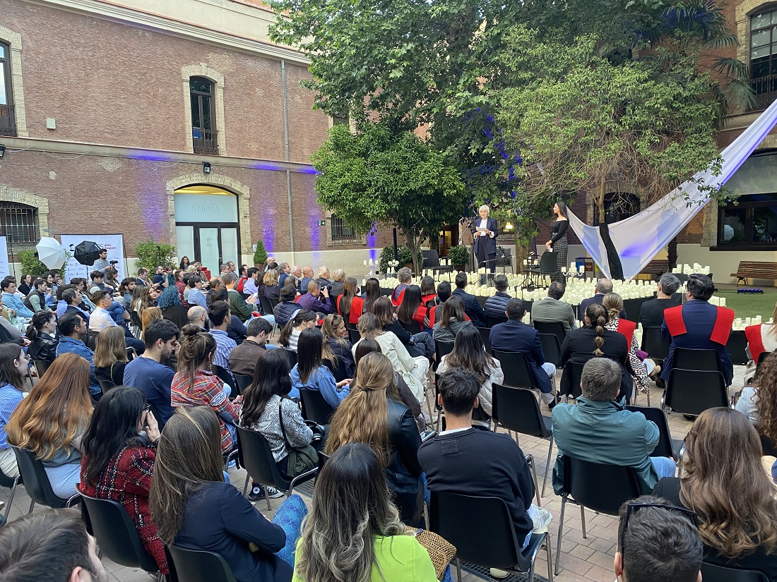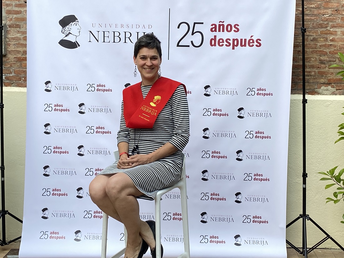 Alumnos, compañeros, colegas -algunos egresados ejercen la docencia en su alma mater-, miembros de la familia Nebrija… así alude María del Mar Ramos a los que escuchan sus palabras con atención. Reconociendo “el impulso que dais a nuestra motivación como docentes”, termina con un mensaje cercano: “Igual tenemos encuentros en empresas en las que ya muchos sois jefes, como en parques persiguiendo a nuestros hijos si vivimos en el mismo barrio con la misma intensidad y alegría de volver a encontrarnos”.