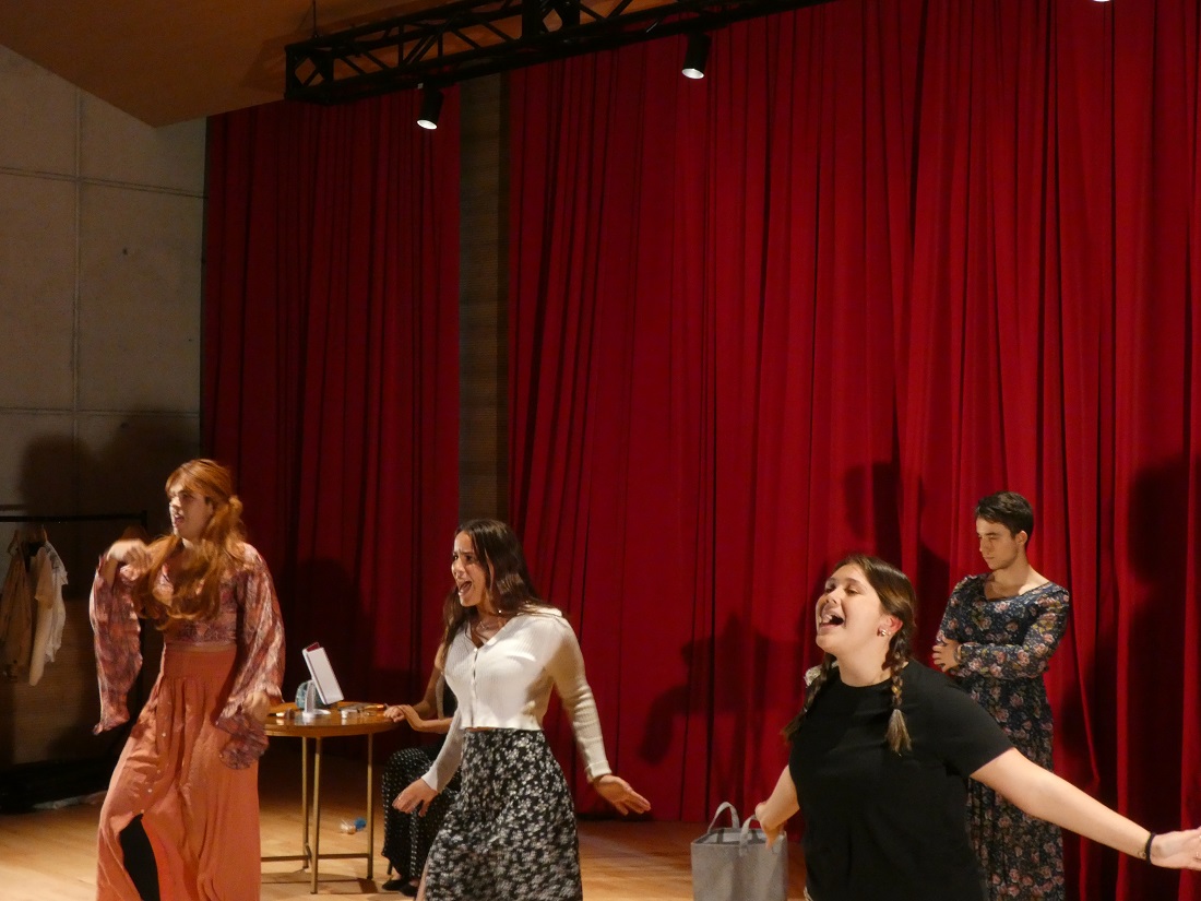 Y, por último, los alumnos de 3º: Elvira Arcos, Mónica Asensio, Zeus Bonete, Lara Cerqueira, Arantxa Coll, Marta Galisteo, Paula González, Thais Iyo, Lucia López, Lucía Martín, Alejandro Paz, Arey Pérez, Eme Revenga y Amaya Yepes interpretaron la creación colectiva Aokigahara, dirigidos por la profesora Nerea Lovecchio.