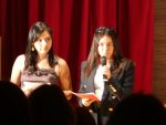La velada empezó con las alumnas Cristina Rodríguez y Alicia Somalo que realizaron una performance denunciando la trata de personas y la prostitución forzada, en un estudio y análisis de los movimientos y géneros teatrales que se imparten en la asignatura de Teatro Contemporáneo.