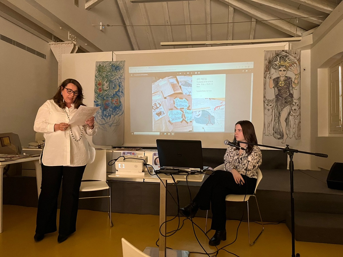 En The Iris Souvenir (Mail Art) la investigadora ETCC Sara Quintero y sus alumnas de primer curso del Grado de Bellas Artes compartieron una iniciativa que ha implicado al alumnado, a artistas, pero también a las y los trabajadores del servicio de correos en una iniciativa de arte postal que reflexionaba sobre la mortandad por violencia de género en las generaciones más jóvenes y recuperaba la figura de Iris, la mensajera olvidada de la mitología grecolatina.