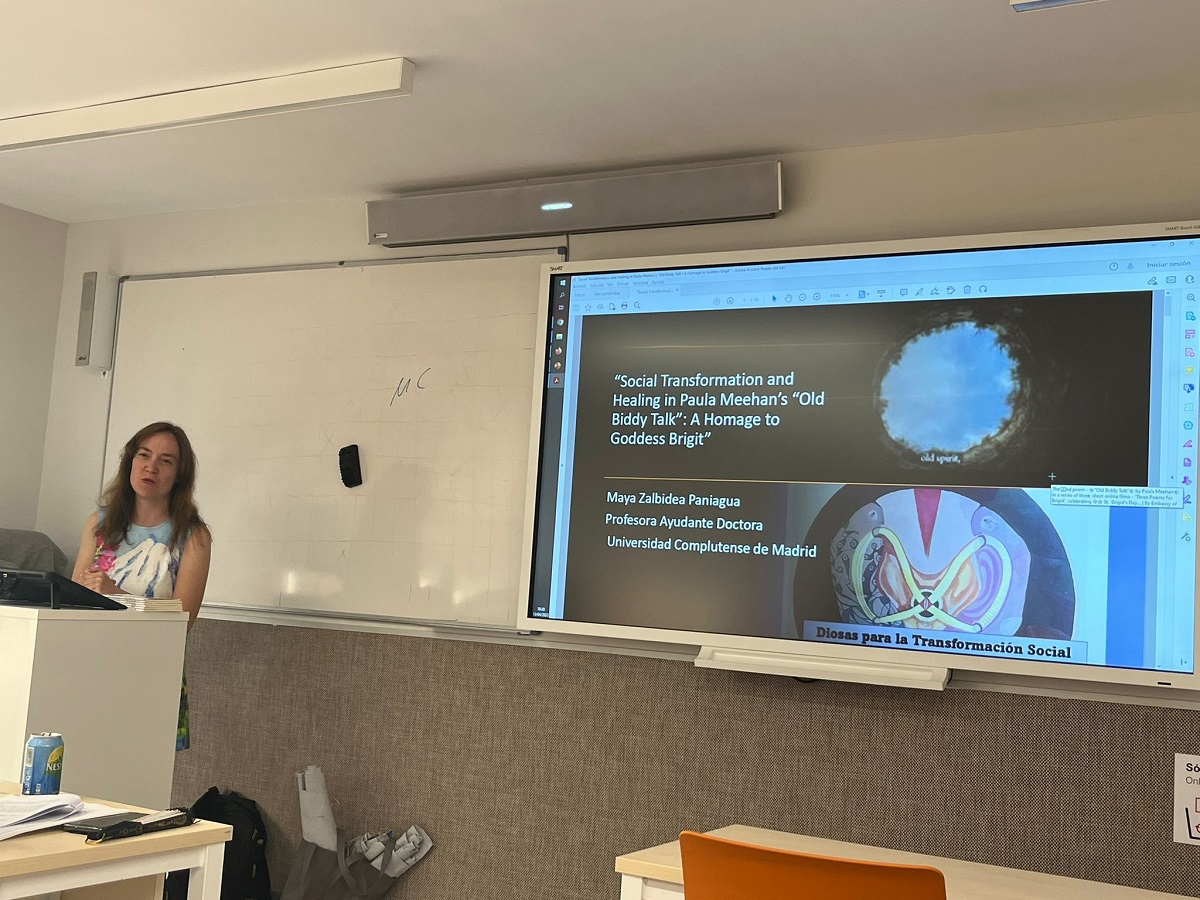 En Social Transformation and Healing in Paula Meehan’s “Old Biddy Talk”: A Homage to Goddess Brigit la investigadora UCM Maya Zalbidea a través de la conmemoración del gobierno irlandés de Brigid santa, diosa, matrona de la poesía, la curación y la herrería que motivó el poema y la película “Old Biddy Talk” de Paula Meehan.