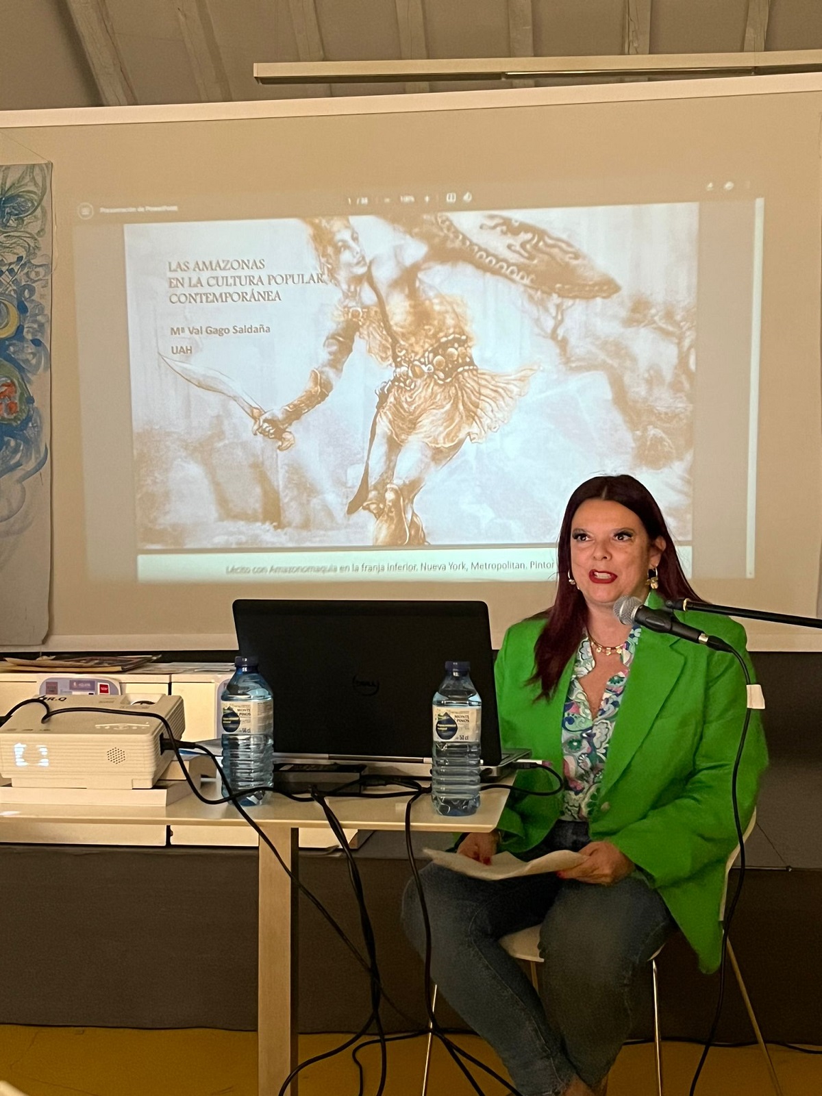 La investigadora de la Universidad de Alcalá de Henares (UAH) María del Val Gago compartió las implicaciones para el empoderamiento de la mujer de la actualidad del mito de las amazonas, desmontando tópicos desde sus fuentes clásicas hasta sus representaciones en ficciones audiovisuales actuales (mainstream y underground).