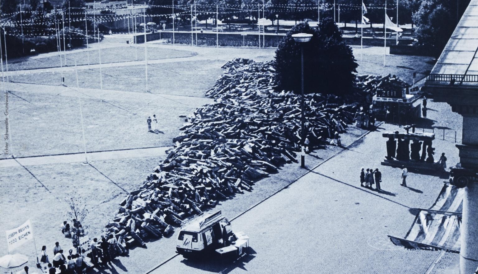 La Documenta es la muestra de arte contemporáneo más importante a nivel mundial que se realiza cada 5 años en la ciudad de Kassel, Alemania. La obra consistía en una enorme pila de 7.000 bloques de roca de basalto colocada frente a la entrada del museo Fridericianum, sin ninguna información y con una única instrucción, que las rocas solo podrían moverse si se plantaba en su nueva ubicación un roble. Hasta que los 7.000 robles no estuvieran plantados, las rocas de basalto seguirían ahí, creando consciencia en la mente de autoridades y ciudadanos.