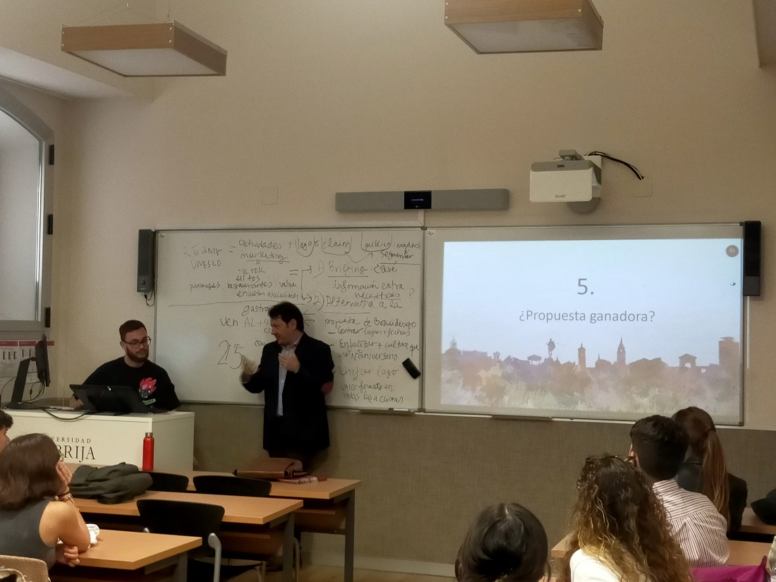 Carlos Gascue y Rafael León, de Brandesign, visitaron a los alumnos de la asignatura Comunicación estratégica de marca del Grado en Marketing el pasado 17 de mayo para compartir la participación de la agencia en el concurso que el Ayuntamiento de Alcalá de Henares convocó para celebrar el 25º aniversario del Patrimonio de Humanidad de la UNESCO de la ciudad.
