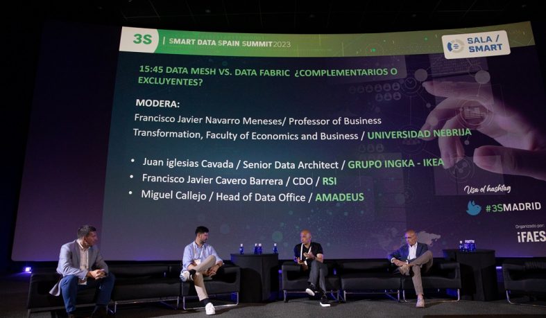 La 7ª edición del Smart Data Spain Summit 2023 ha contado este año con la participación de Francisco Javier Navarro Meneses, profesor en el Departamento de Turismo de la Universidad Nebrija, como moderador del panel titulado Data Mesh vs Data Fabric: ¿complementarios o excluyentes?, compuesto por destacados profesionales que están liderando algunos de los proyectos de datos más innovadores en España, entre ellos Miguel Callejo (Head of Data Office de Amadeus), Francisco Javier Cavero (CDO de RSI Servicios Informáticos del Grupo Caja Rural) y Juan Iglesias (Senior Data Architect de Grupo INGKA-IKEA).