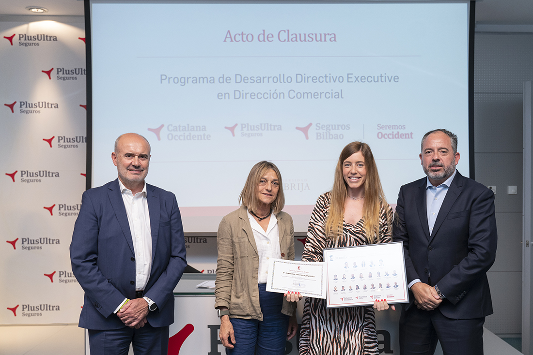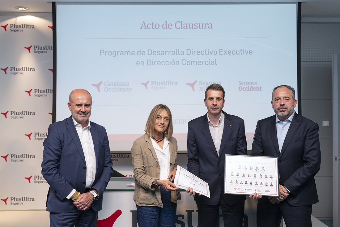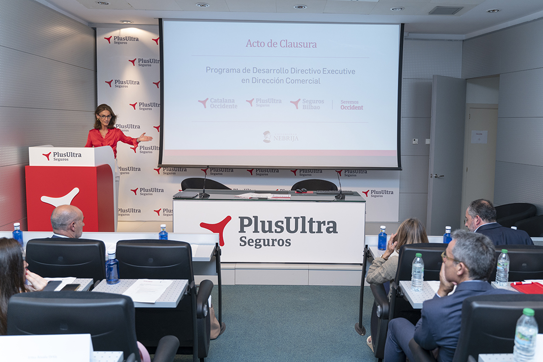 El auditorio de Plus Ultra Seguros, ubicado en la céntrica plaza de Las Cortes (Madrid), albergó el acto de clausura de la segunda edición del Programa de Desarrollo Executive en Dirección Comercial para las empresas del grupo Catalana Occidente, en el futuro Occident. La formación, avalada por la metodología docente de la Universidad Nebrija, se centró en la responsabilidad de identificar, atraer, mantener y gestionar la relación de fidelización con los clientes, y cumplió con los siguientes objetivos: conocer las claves actuales del mercado y tendencias futuras en el sector, adquirir una visión estratégica del desarrollo comercial y tomar decisiones rentables para la compañía.