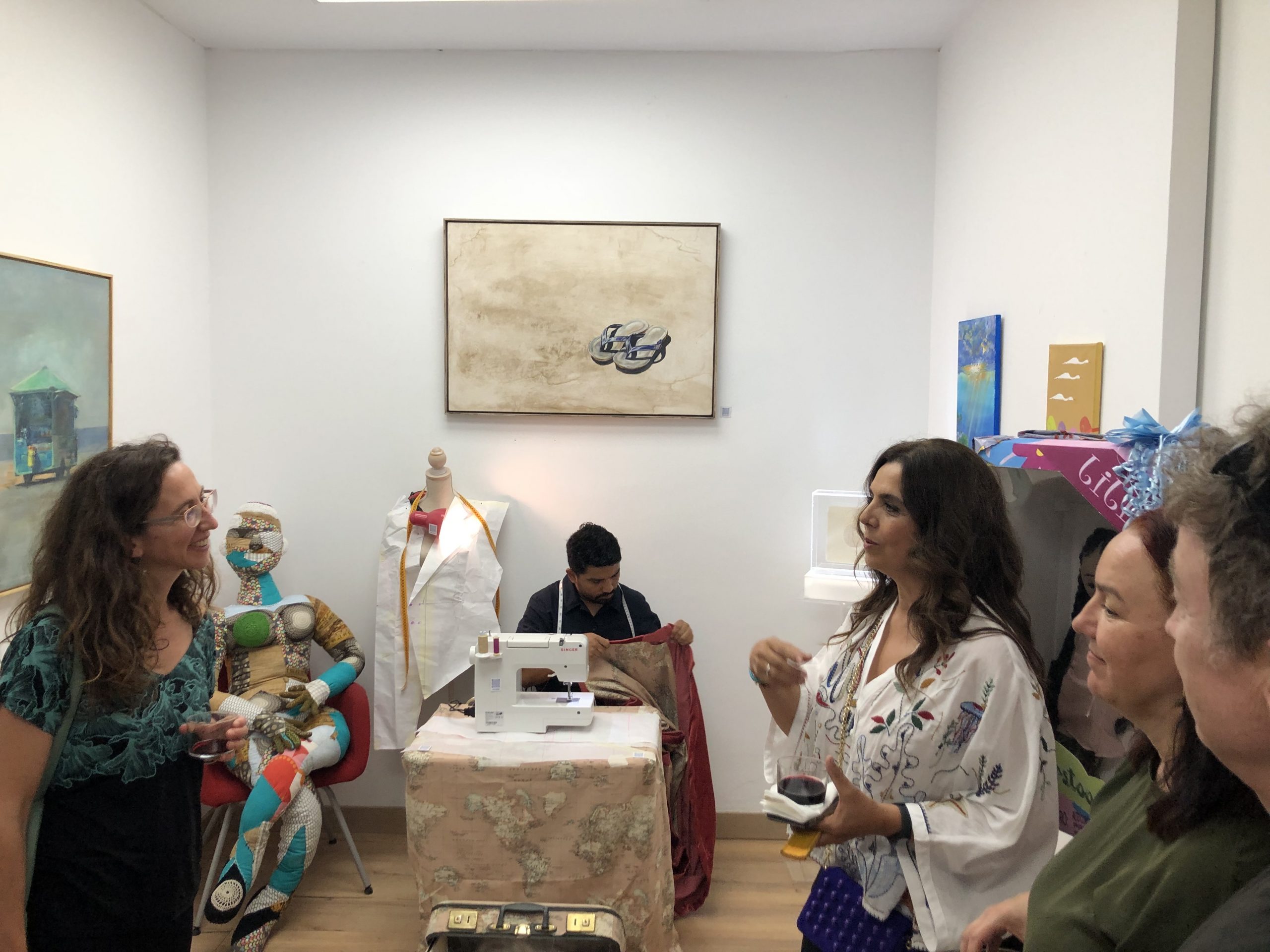 El alumni de Artes Escénicas Gustavo Solís Góchez, que ya había estado involucrado en la Performance Cartográfica del curso 2021-2022 acudió el día de la inauguración, el 22 de junio a las 20 horas, para realizar una performance que implicaba un ejercicio de confección en vivo durante la inauguración de una capa con una tela estampada en cartografías de mapamundi.