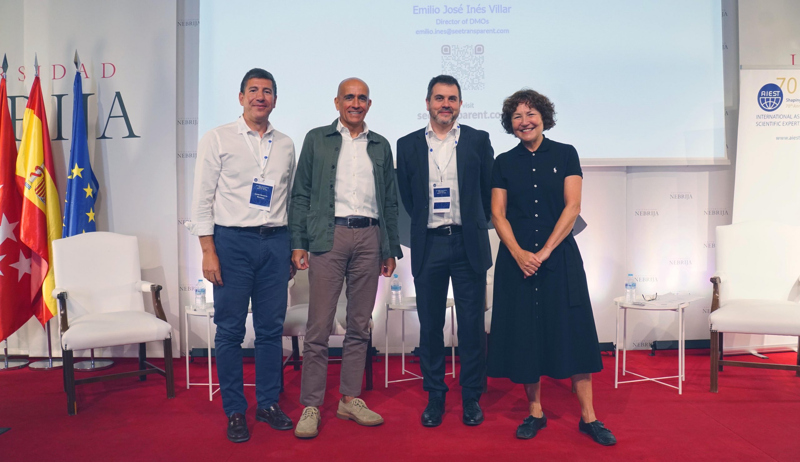 Durante tres días, del 28 al 30 de agosto, 60 expertos mundiales en turismo se dieron cita en el salón de actos de la Universidad Nebrija. En su salón de actos trataron temas como el diseño de sistemas turísticos para un futuro sostenible, la transición hacia futuros destinos turísticos a través de un desarrollo inteligente y ecológico y los avances de la AIEST en investigación turística: perspectivas de actores, instituciones y sistemas.
