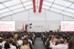 Ante la nueva camada de universitarios, Muñiz desgranó las principales excelencias de Nebrija: calidad docente, investigación, empleabilidad (más de 12 000 convenios con empresas), internacionalidad (el 25 % de los alumnos es de fuera de España), prácticas profesionales e innovación. Bajo el lema de “las siete palabras mágicas” –Pasión por saber y pasión por emprender-, la Universidad ofrece un “binomio fundamental de conocimiento (rigor) y valores, que revertirán en la sociedad” a través de la “fórmula magistral” R=CE2 (Rendimiento=Capacidad por esfuerzo al cuadrado).