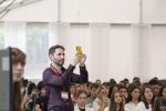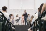 La última parte de la bienvenida correspondió al Consejo de Delegados. Jaime Martín, Iván Ruiz, Carla Torres y Mireya Valls sacaron a colación su particular “kit de supervivencia de estudiantes para estudiantes”. Entre los “utensilios” básicos de este particular maletín no faltan las emociones, las ganas por conocer a compañeros y profesionales de Nebrija o la brújula de la experimentación y de sentimientos. “No os volváis simples coleccionistas de momentos, disfrutad de la experiencia y de las conversaciones”, contaron.