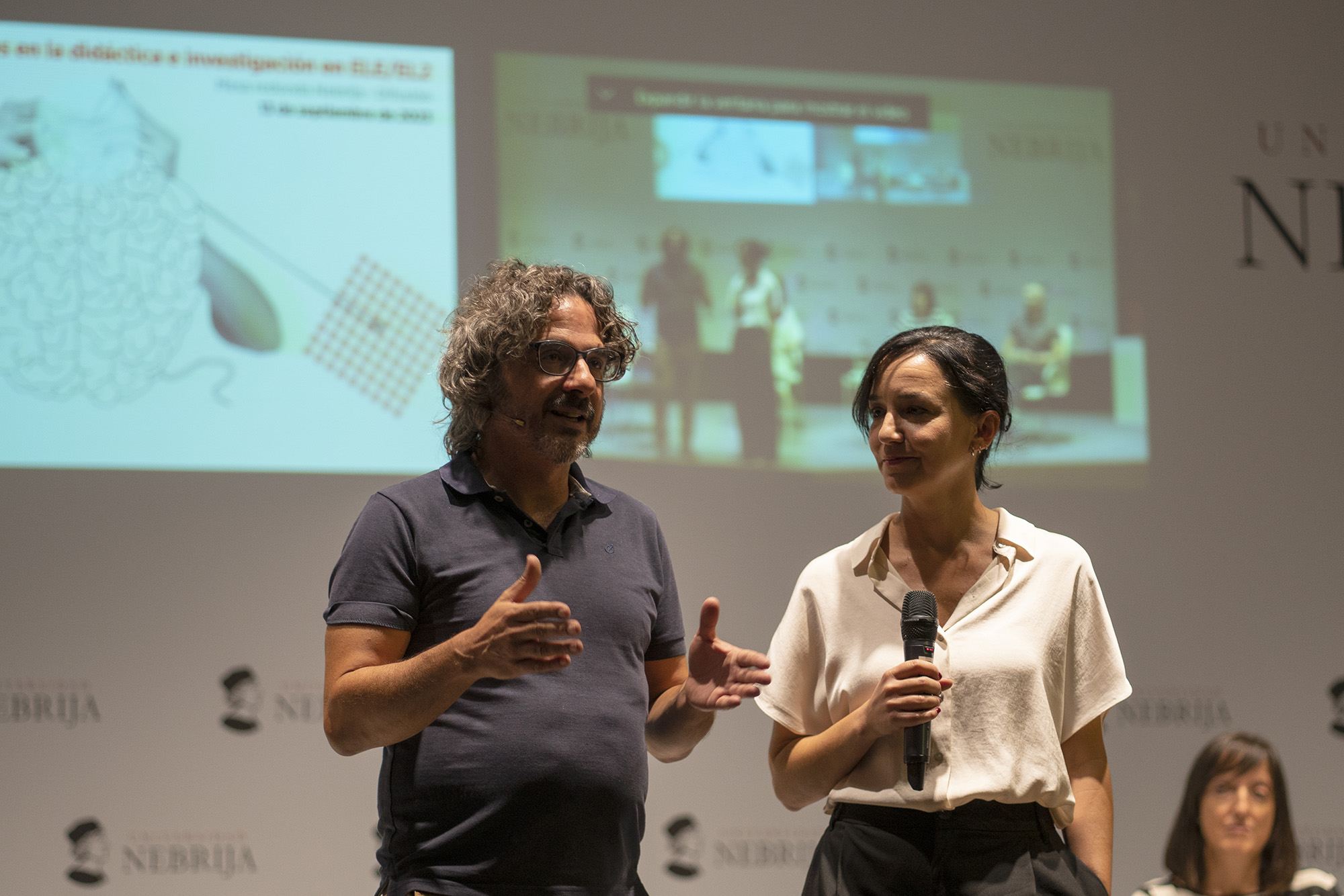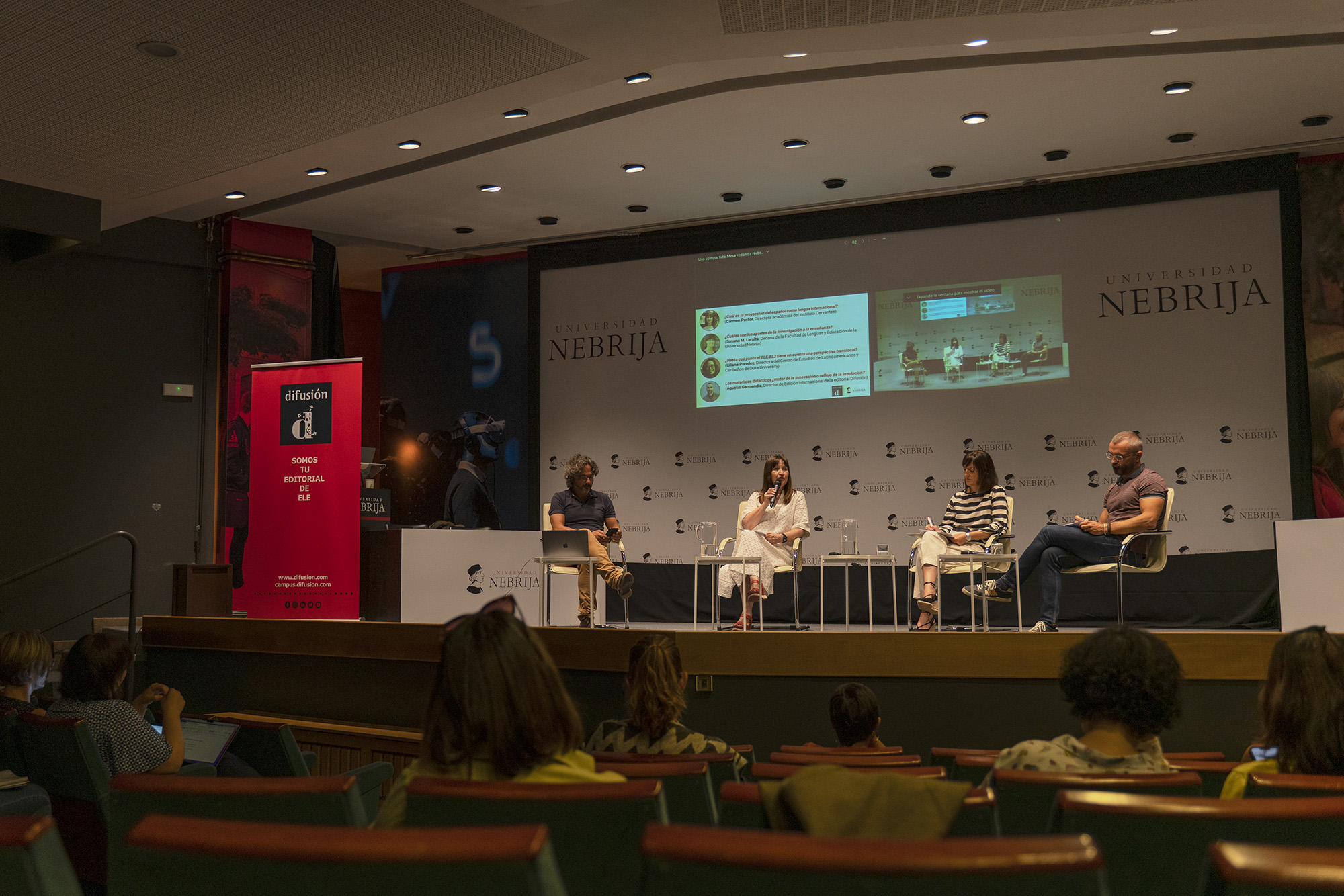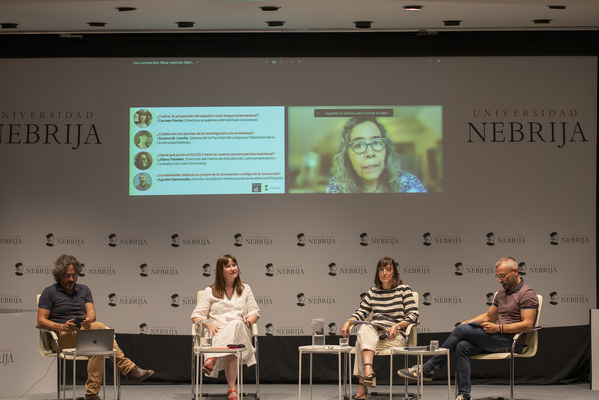 Para activar la respuesta de los profesionales de la didáctica del español como nueva lengua, el curso académico comenzó con una mesa redonda en la que intervinieron Carmen Pastor, directora académica del Instituto Cervantes; Susana Martín Leralta, decana de la Facultad de Lenguas y Educación de la Universidad Nebrija; Liliana Paredes, directora del Centro de Estudios Latinoamericanos y Caribeños de la Universidad de Duke -que participó desde Estados Unidos-, y Agustín Garmendia, director de Edición Internacional de la editorial Difusión.