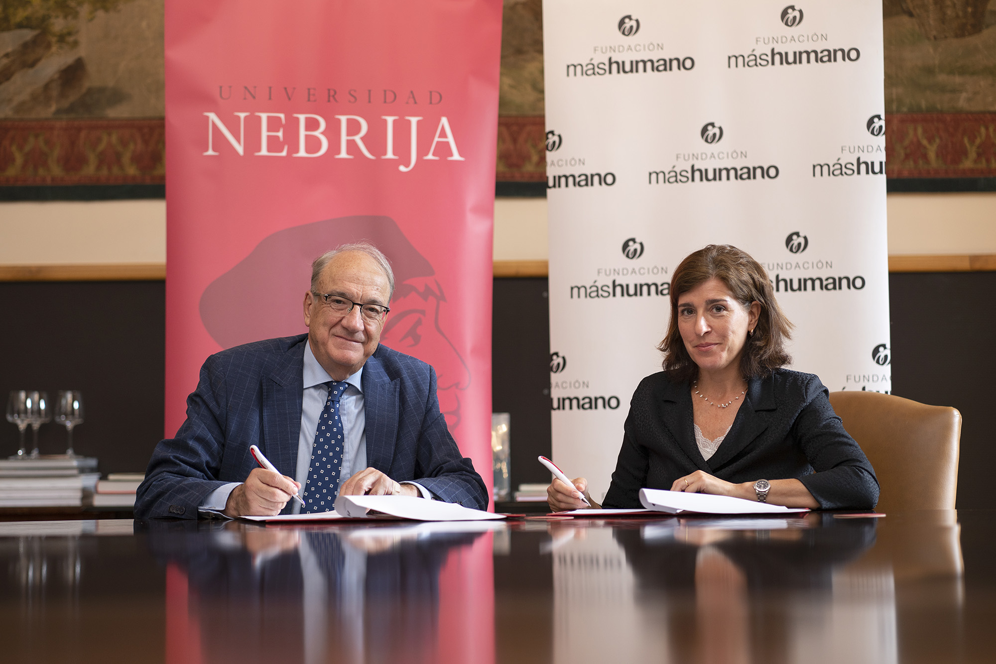 El acuerdo entre la Fundación máshumano y la Universidad Nebrija recoge asesoramiento mutuo en áreas académicas, colaboración en programas académicos específicos de la Facultad de Economía y Empresa que revistan especial interés para profesores y autoridades institucionales, apoyo en el programa de mentores, colaboración en seminarios, jornadas, cursos, conferencias y otras acciones -sobre todo en aquellos organizados por la Facultad de Economía y Empresas en el ámbito de los recursos humanos, en especial el curso sobre impulso digital en su modalidad avanzada- y colaboración en actividades académicas, culturales o de investigación.