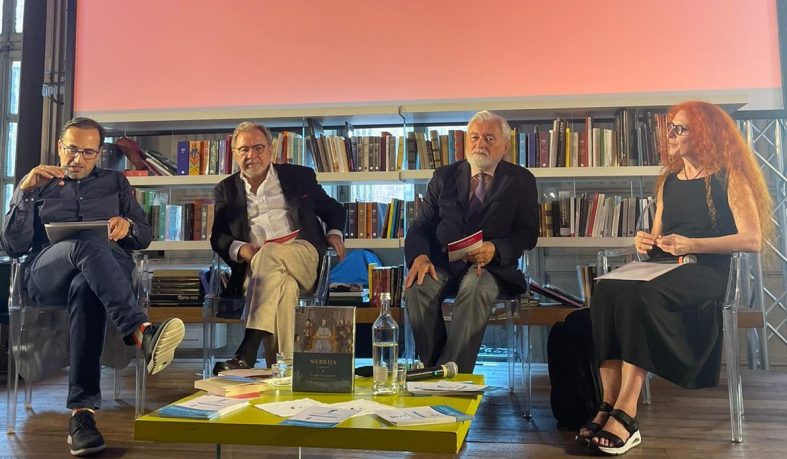 El acto tuvo lugar en un magnífico palacio barroco, el Palazzo Graneri della Roccia, construido entre 1681 y 1699, sede del Circolo dei lettori, en un gran salón abarrotado de personas, y fue moderado por la hispanista turinesa Veronica Orazi, del Dipartimento di Scienze Letterarie e Filologiche, Università degli Studi di Torino. Para hablar al público italiano sobre la influencia de la cultura italiana en Nebrija y la posterior impronta del propio Antonio de Nebrija en el humanismo italiano, fueron tres los escritores invitados al diálogo: Darío Villanueva (presidente del Patronato de la Universidad Nebrija, académico y exdirector de la RAE), Juan Luis Cebrián (académico de la RAE y presidente de honor del diario El País) y Diego Moldes (director de Relaciones Institucionales de la Fundación Nebrija), autor, además, del libro Antonio de Nebrija y su origen judeoconverso.