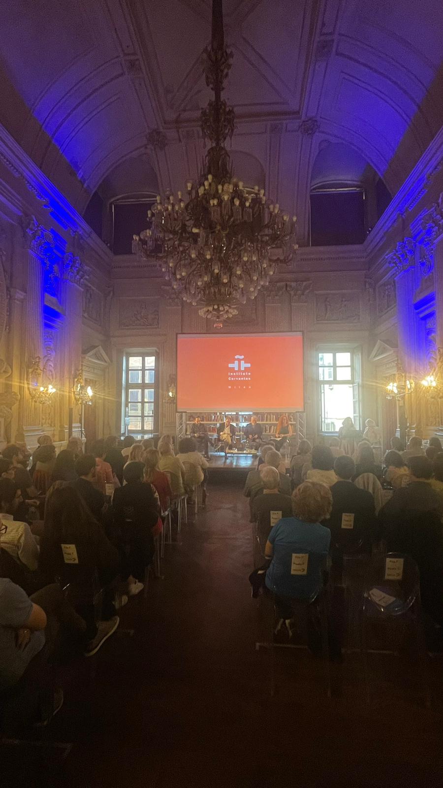 Antes de la conferencia a tres voces, dieron unas palabras de bienvenida María Jesús García Miguel, cónsul honorario del Reino de España en Turín, y Teresa Iniesta Orozco, directora del Instituto Cervantes de Milán.
