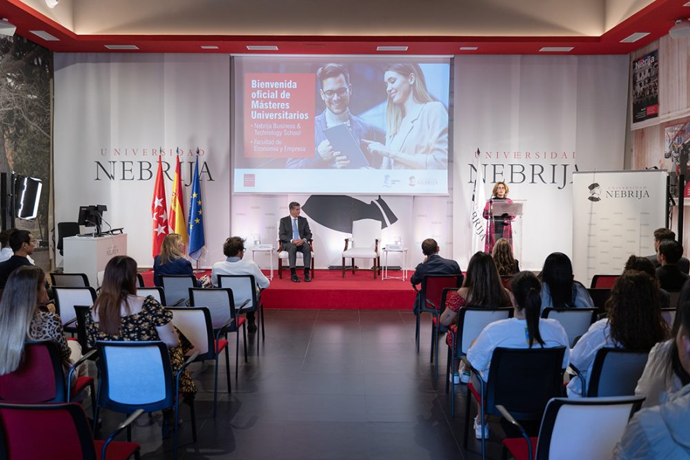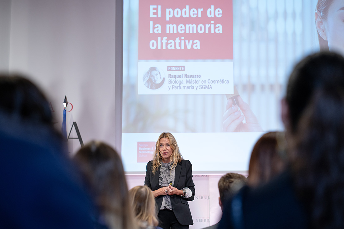 La bienvenida oficial a los estudiantes de posgrado de la Facultad de Economía y Empresa de la Universidad Nebrija y de la Nebrija Business & Technology School (NBTS) sorprendió a propios y extraños. Acompañando el discurso de la decana Ana Fernández-Ardavín y los mensajes motivacionales relacionados con la mentalidad empresarial, la explicación de la plataforma de medicina de ARN mensajero (ARNm) de Moderna, a cargo de su director general en España y Portugal Juan Carlos Gil, y un taller sobre memoria olfativa, de la bióloga Raquel Navarro, protagonizaron el acto de puesta de largo de los once másteres.