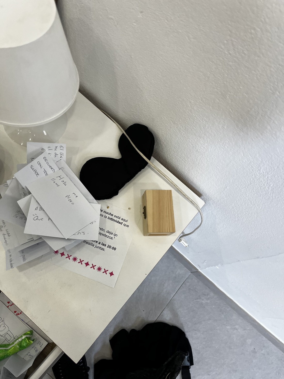 Los estudiantes apagaron la lamparita encendida de la mesilla de noche y procedieron a dar lectura a los mensajes y a liberar los pequeños objetos allí custodiados como flores secas y chucherías. “La verdad es que la experiencia ha sido maravillosa. Lo que más nos ha gustado ha sido poder conectar con el público. Normalmente se hacen exposiciones y te quedas sin saber qué ha sentido cuando ha pasado por ella. Esta vez nos hemos quedado con un pedacito del público también”, confiesa Macarena Amiama Carrasco.