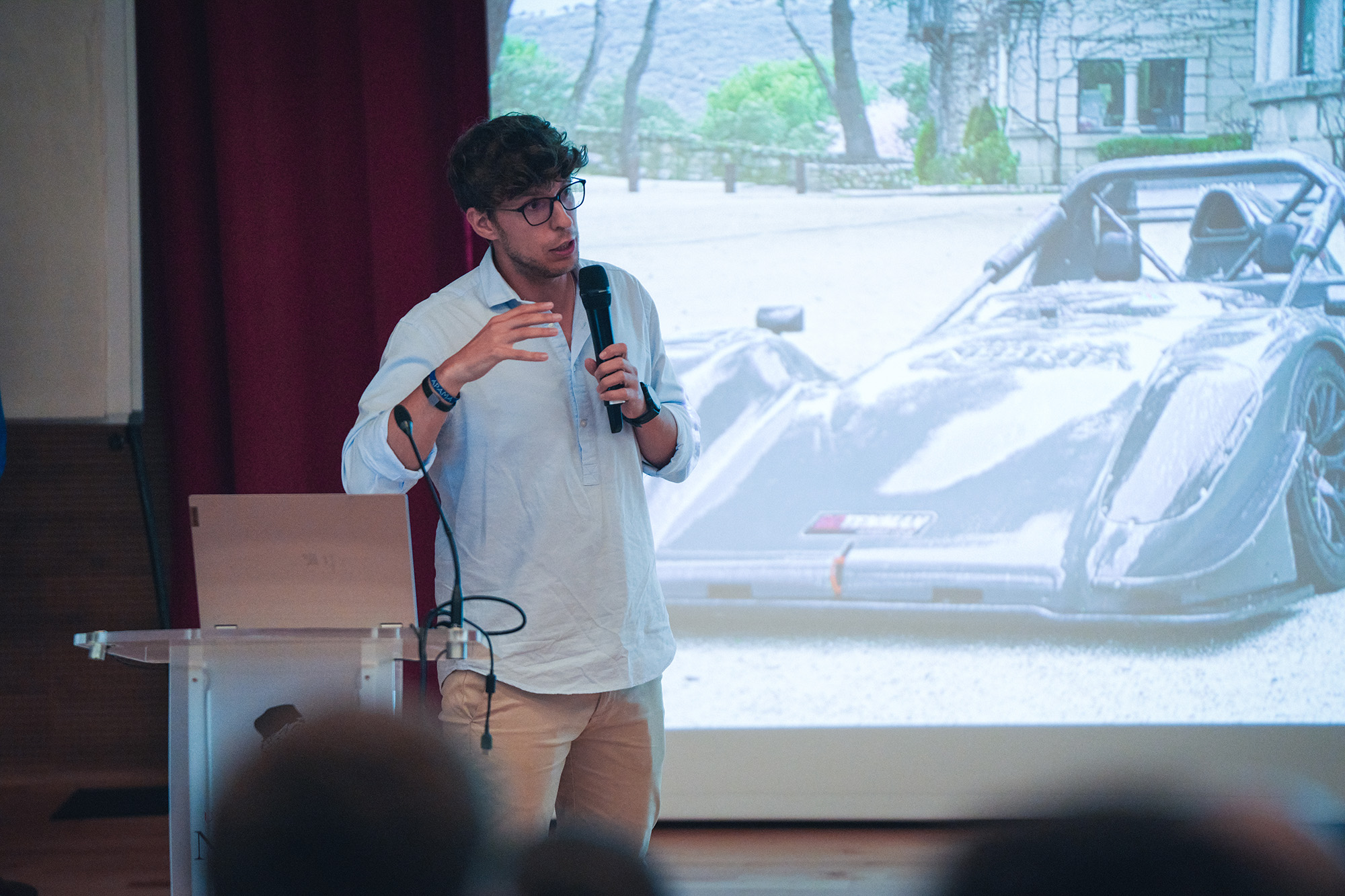 Para explicar cada uno de ellas, subieron al escenario los directores de las titulaciones del Grado en Ingeniería del Automóvil de Nebrija y del Grado en Ingeniería Mecánica, Daniel Gómez y Óscar Castillo, el responsable del proyecto Motostudent, Jesús García-Moreno, y Alberto Lindon, a cargo del Club del Automóvil . “Uno de los principales problemas que tienen los ingenieros al trabajar con pilotos de carreras es que, a veces, hay un problema de entendimiento. Es necesario que os empecéis a poner en su lugar también para explicarles cosas que no son tan evidentes en la telemetría”, señaló Jesús García-Moreno.