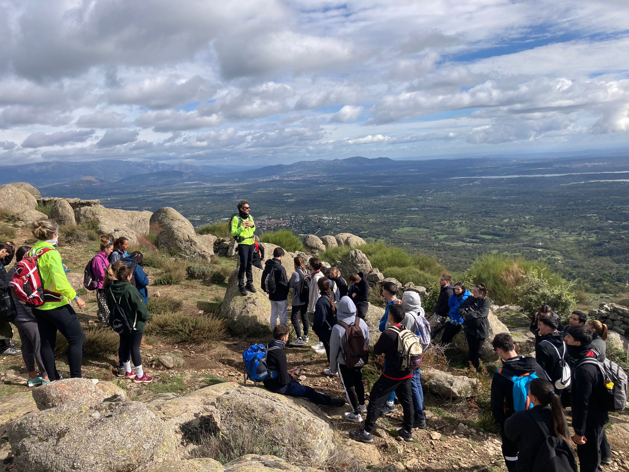 En esta ocasión, con un total de 50 alumnos de distintas facultades de la Universidad, la cita tuvo lugar en el entorno de Zarzalejo y San Lorenzo de El Escorial, y la ruta programada permitió ascender a Las Machotas, dos formaciones graníticas de más de 1400 metros de altitud por la senda de Entrecabezas, para posteriormente, una vez el grupo hizo cumbre en ambos picos, descender por el Camino de San Lorenzo y experimentar el senderismo por estas cumbres próximas a Monasterio de El Escorial que fueron cantera de la centenaria construcción que impulsó Felipe II