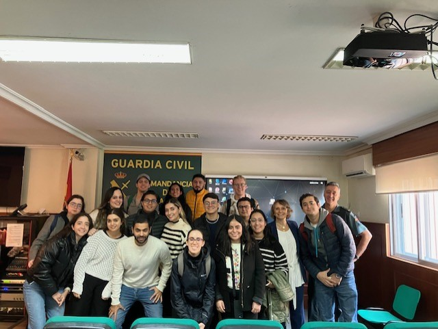 Dentro de las actividades programadas en el primer semestre del curso 2023-24, los alumnos que cursan el Grado en Derecho, modalidad presencial, en el marco de la Asignatura de Derecho Penal II, han sido invitados por el coronel de la Guardia Civil, Diego Pérez de los Cobos, destinado en la Comandancia de la Guardia Civil de Madrid, con sede en el Municipio de Tres Cantos, a asistir a la Jornada programada por la Comandancia y diseñada exclusivamente para los alumnos de la Universidad Nebrija. María Dolores López Faraldos, profesora de Derecho Penal, organizó la visita y acompañó a los estudiantes.