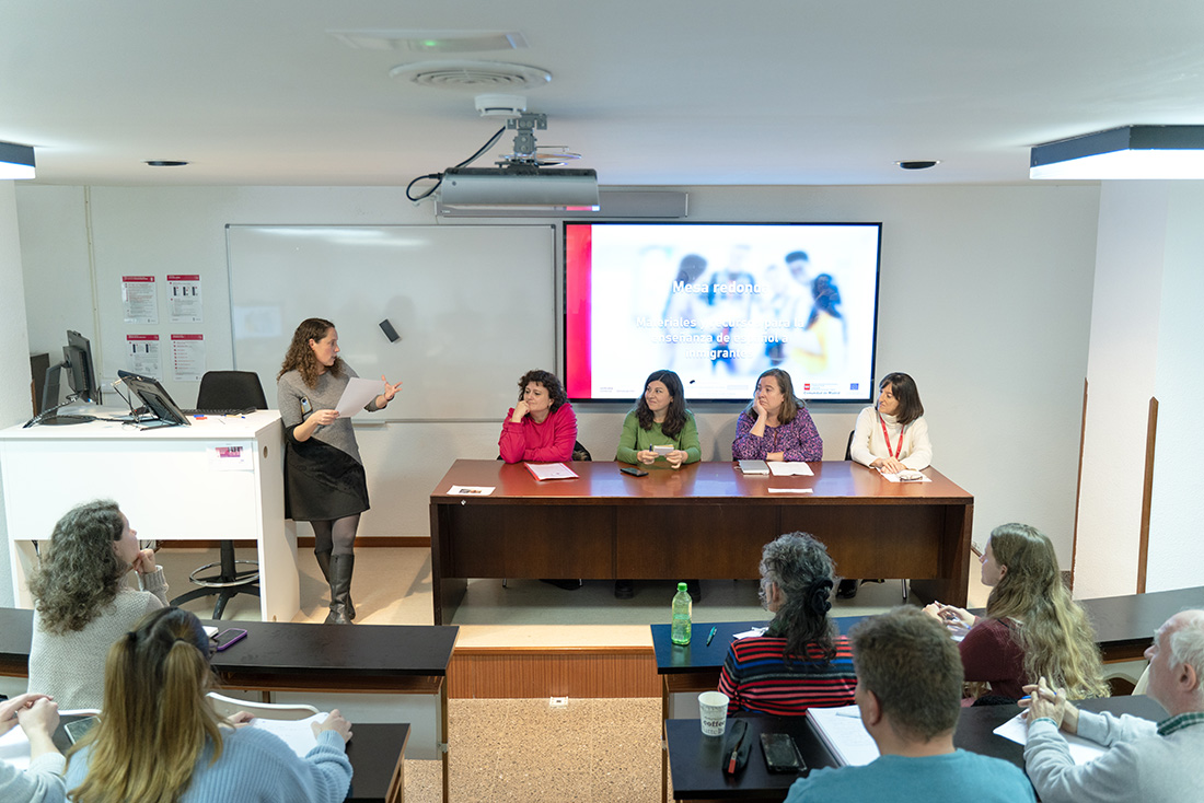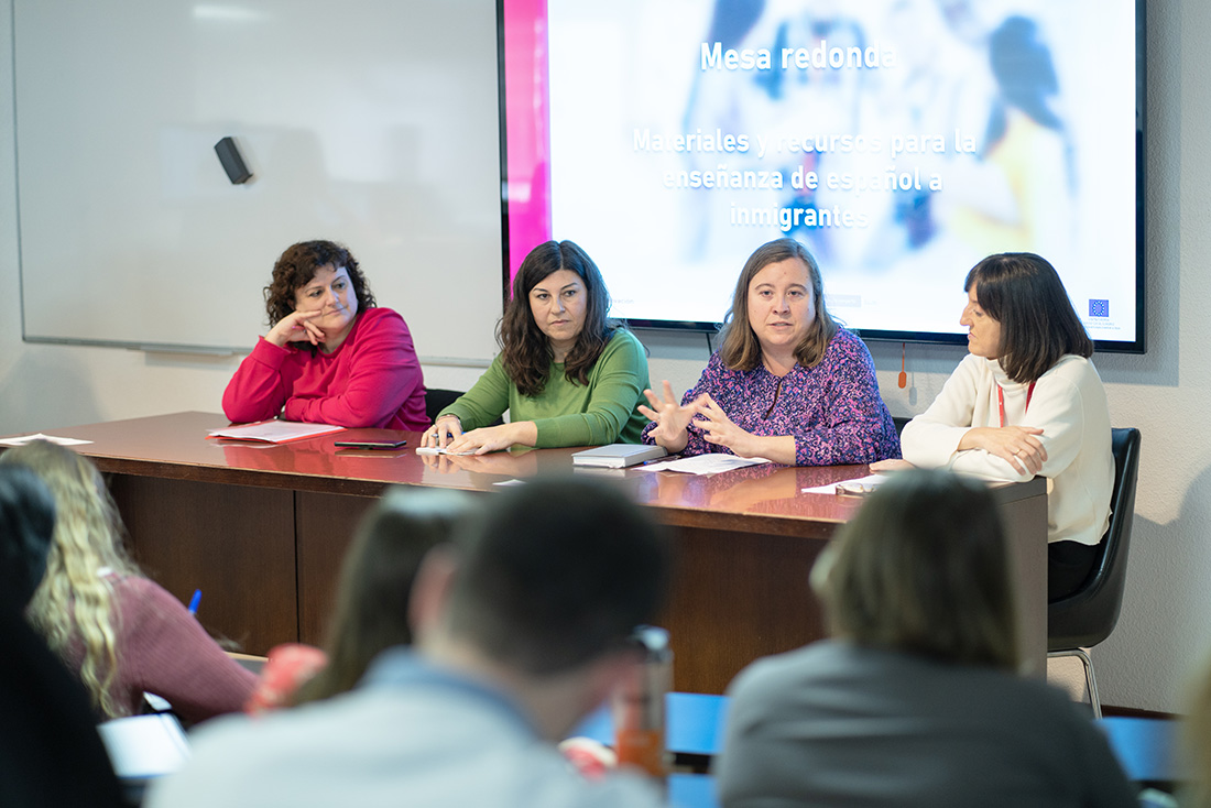 Una mesa redonda sobre materiales y recursos para la enseñanza de español a inmigrantes dio fin a la IX Jornada Lengua y Migración. En ella intervinieron Susana Martín Leralta, decana de la Facultad de Lenguas y Educación de la Universidad Nebrija; Victoria Khraiche, miembro del Grupo de Investigación Complutense sobre el Magreb y Oriente Medio y secretaria de la Asociación para la Integración Lingüística del Inmigrante en Madrid (Asilim); Carolina Delgado, profesora de la Oficina Municipal de Información, Orientación y Acompañamiento para la Integración de Población Inmigrante; y Débora Orozco, Coordinadora del Servicio de Aprendizaje del Idioma y Formación del Programa de Refugiados de Cruz Roja Española.