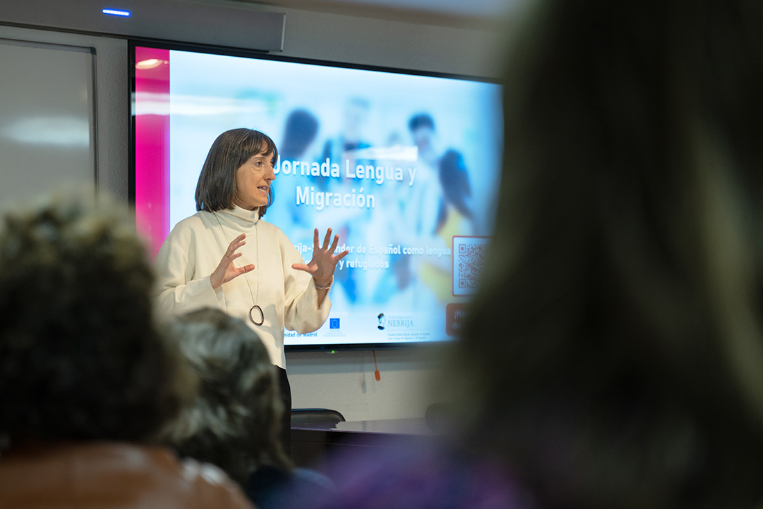 La IX Jornada Lengua y Migración, en su objetivo de acercar a todos al “apasionante” mundo de la adquisición y la enseñanza del español, contó precisamente con la intervención de Margarita Planelles, que junto a Ocarina Masid, explicó la apuesta de la Universidad Nebrija por divulgar todo lo relativo a este campo docente. “Queremos hacer llegar a la sociedad todo lo que investigamos de manera rigurosa, por eso organizamos jornadas como esta”, reseñó Planelles.