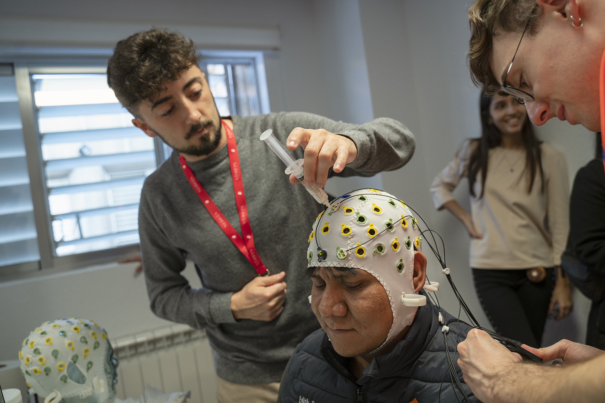 Una tercera investigación está centrada en el electroencefalograma, la actividad eléctrica emitida por el cerebro. Gracias a unos electrodos situados en el cuero cabelludo son capaces de capturar las diferencias de voltaje emitidas cuando las neuronas envían impulsos eléctricos de forma sincronizada.