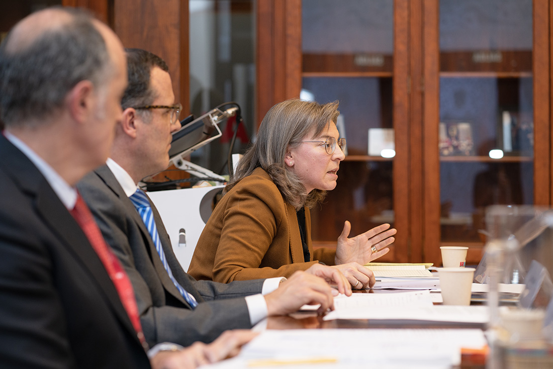 Desde el campo jurídico, Alfonso López de la Osa, decano de la Facultad de Derecho y Relaciones Internacionales de la Universidad Nebrija y director de la Cátedra Jean Monnet EUDEFENCE, asoció artículos y figuras legales mientras consideraba que la Unión Europea “ha dejado de lado” la política de seguridad. “Podíamos dar lecciones de gestión de la paz y nos hemos dado cuenta de que nos hemos quedado cortos”, reseñó. A su petición de alcanzar en España el 2 % del PIB en gasto en Defensa, López de la Osa unió la siguiente reflexión: “Estamos en alerta roja constantemente con los ciberataques, hacen faltan nuevas capacidades como el dominio cibernético. Además, hay una lucha de egos, un trasfondo presidencialista de algunos países que ha dejado de lado la solidaridad”.