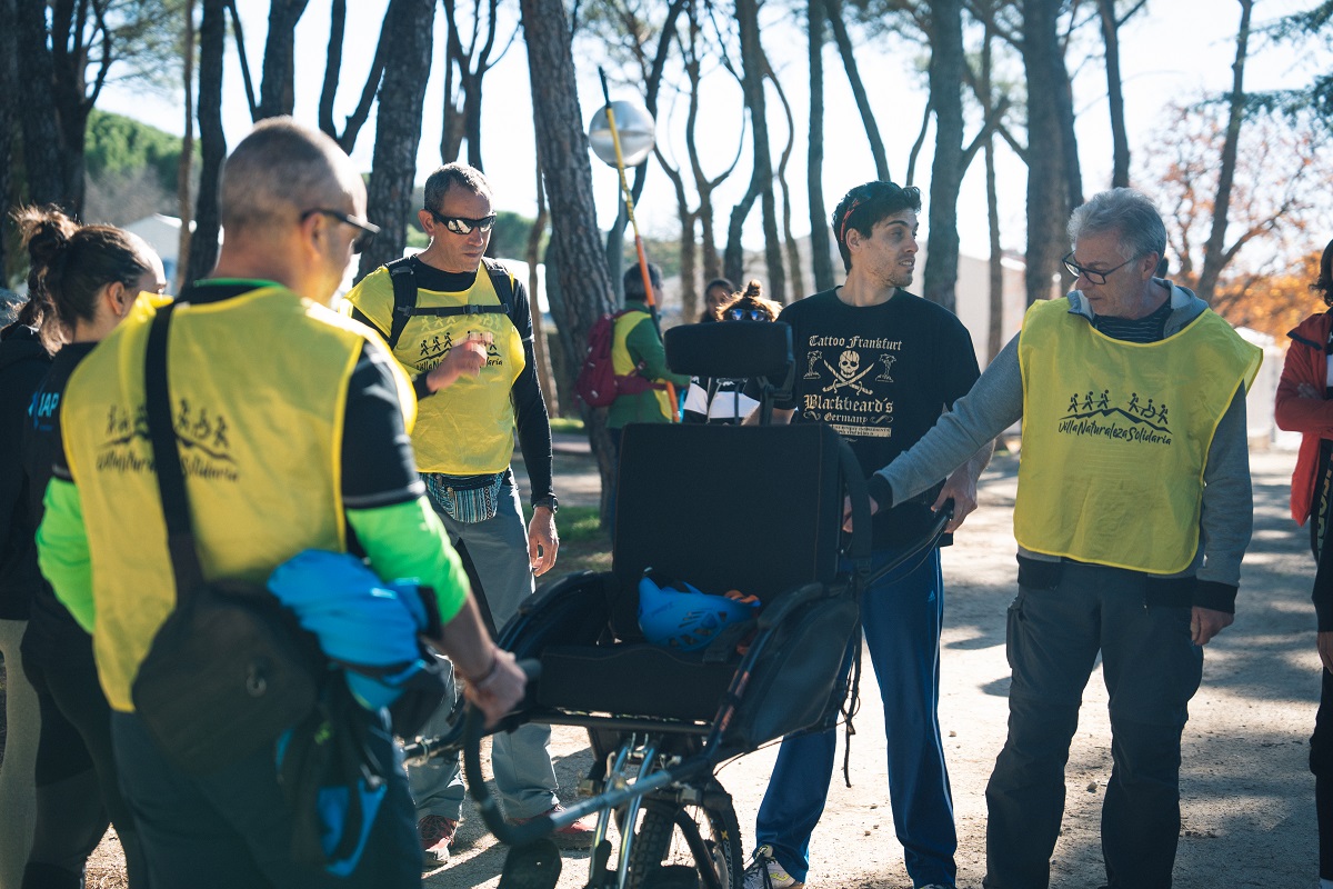 El sillón, los elementos de seguridad (frenos, amortiguación, cinturón y casco), los dos brazos de la Joëlette e incluso su bolsa de herramientas forman un medio simpar al que pocas trochas se le resisten. “Atentos – no se cansan de repetir los voluntarios- que el pasajero esté siempre a gusto, que vaya horizontal, hay que dirigir bien la silla e ir hablando con él porque la comunicación entre todos es fundamental”.