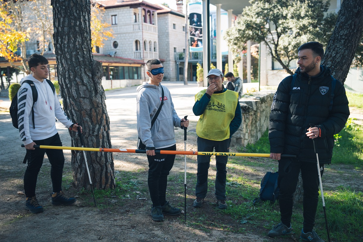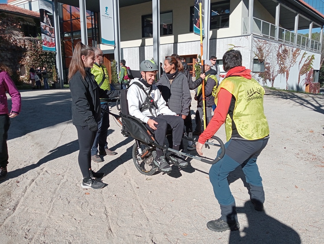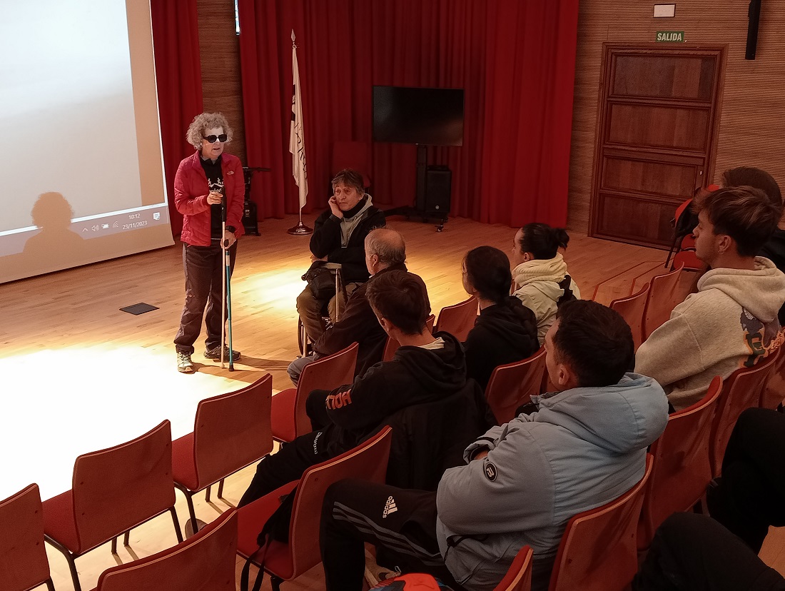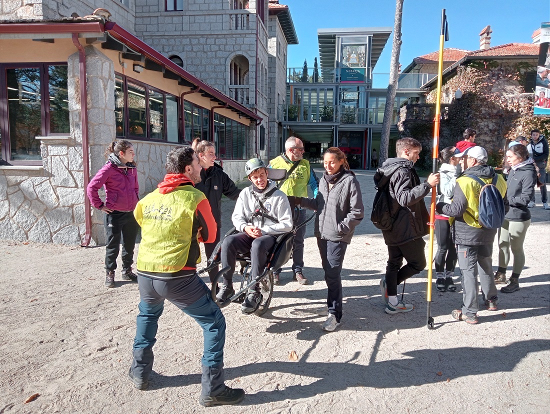 El agradecimiento, el ejercicio físico, la camaradería, las bromas y la superación acompañan a estudiantes, profesores y voluntarios por el camino serrano. Escuchar todo lo que cuentan entre la brisa del otoño equivale a experimentar un placer en plena naturaleza al alcance de todos. Los más jóvenes preguntan todas las dudas que les surgen, tal y como les apremia Maite Minaya, presidenta de la asociación VillaNaturalezaSolidaria que, en la sesión teórica les recuerda que la discapacidad “puede aparecer en cualquier momento, desde que somos un feto hasta edades más avanzadas por enfermedades, accidentes o guerras, por eso tenemos que normalizarla y conocerla de forma positiva, sin tabúes”.