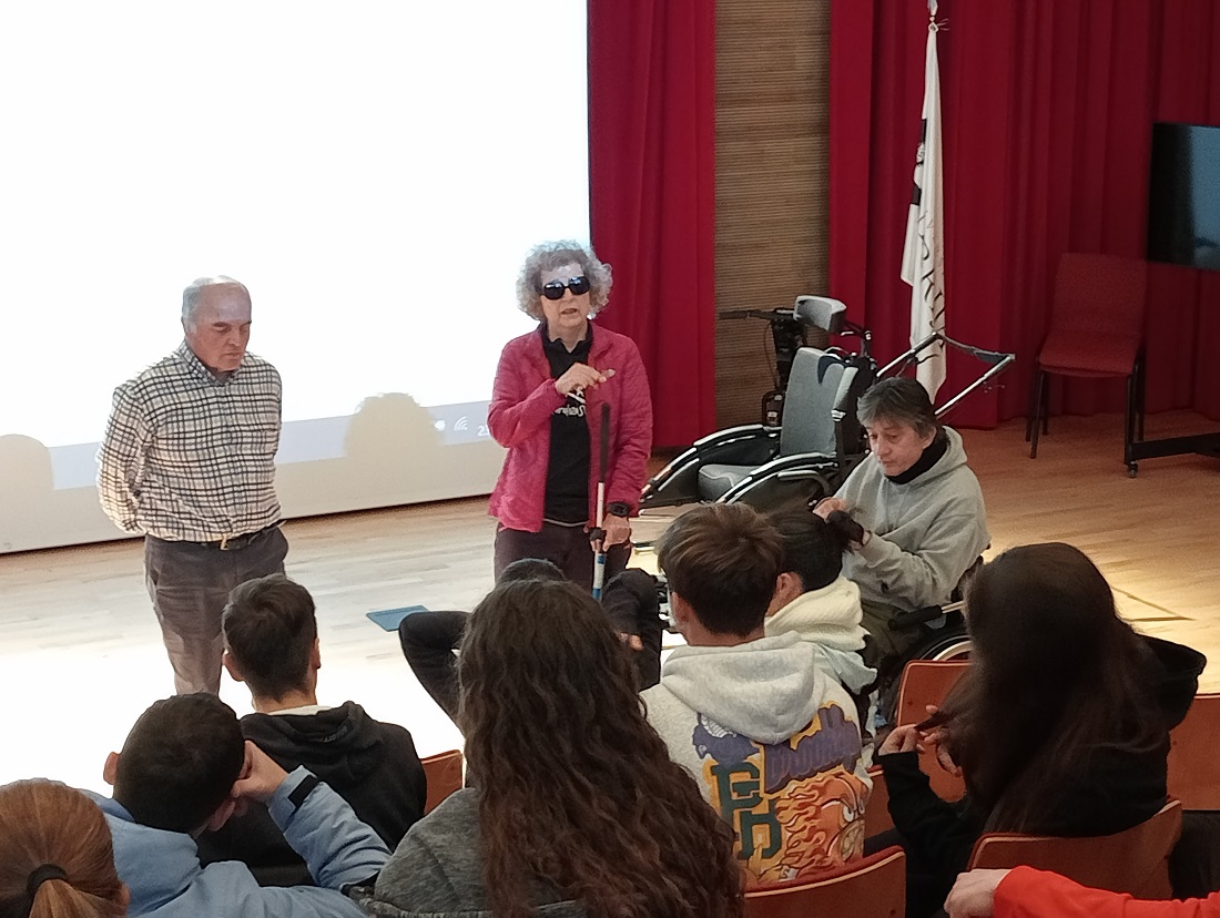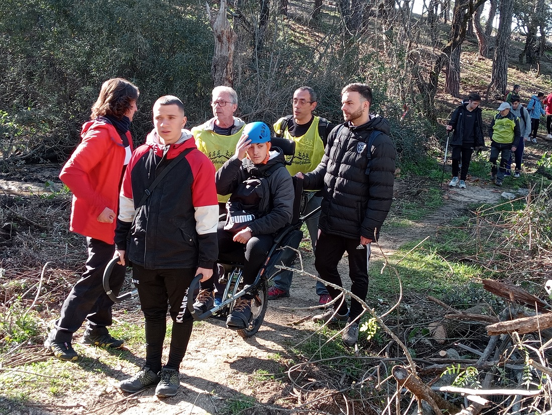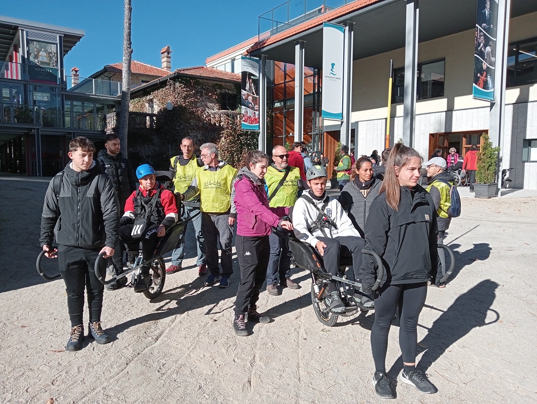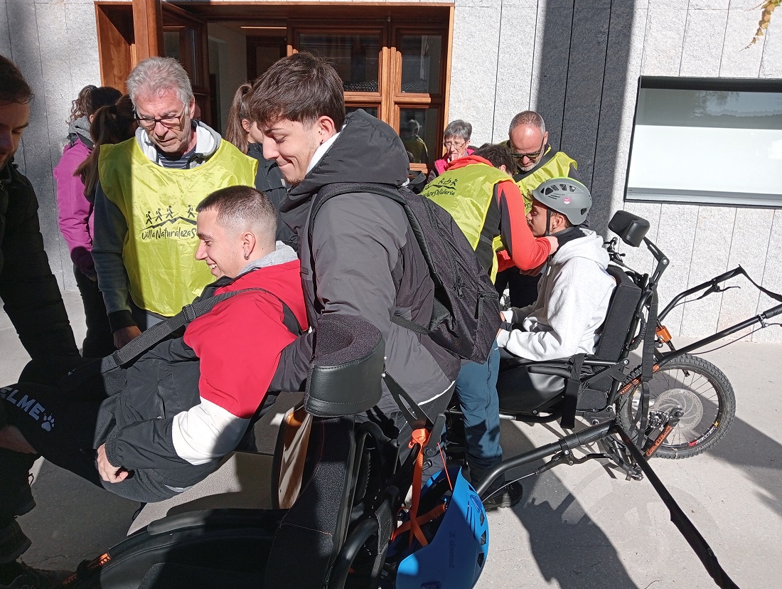 El agradecimiento, el ejercicio físico, la camaradería, las bromas y la superación acompañan a estudiantes, profesores y voluntarios por el camino serrano. Escuchar todo lo que cuentan entre la brisa del otoño equivale a experimentar un placer en plena naturaleza al alcance de todos. Los más jóvenes preguntan todas las dudas que les surgen, tal y como les apremia Maite Minaya, presidenta de la asociación VillaNaturalezaSolidaria que, en la sesión teórica les recuerda que la discapacidad “puede aparecer en cualquier momento, desde que somos un feto hasta edades más avanzadas por enfermedades, accidentes o guerras, por eso tenemos que normalizarla y conocerla de forma positiva, sin tabúes”.