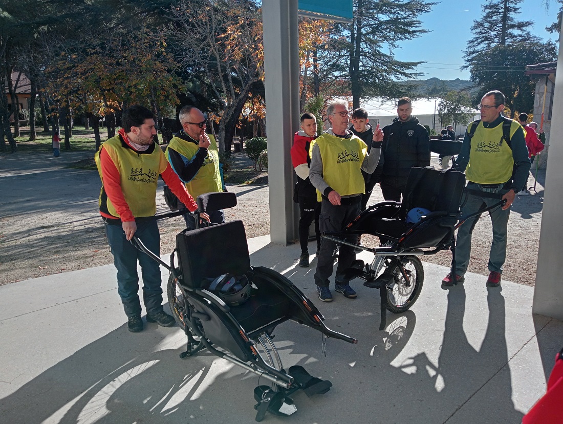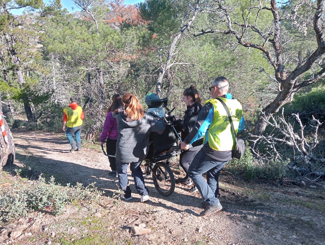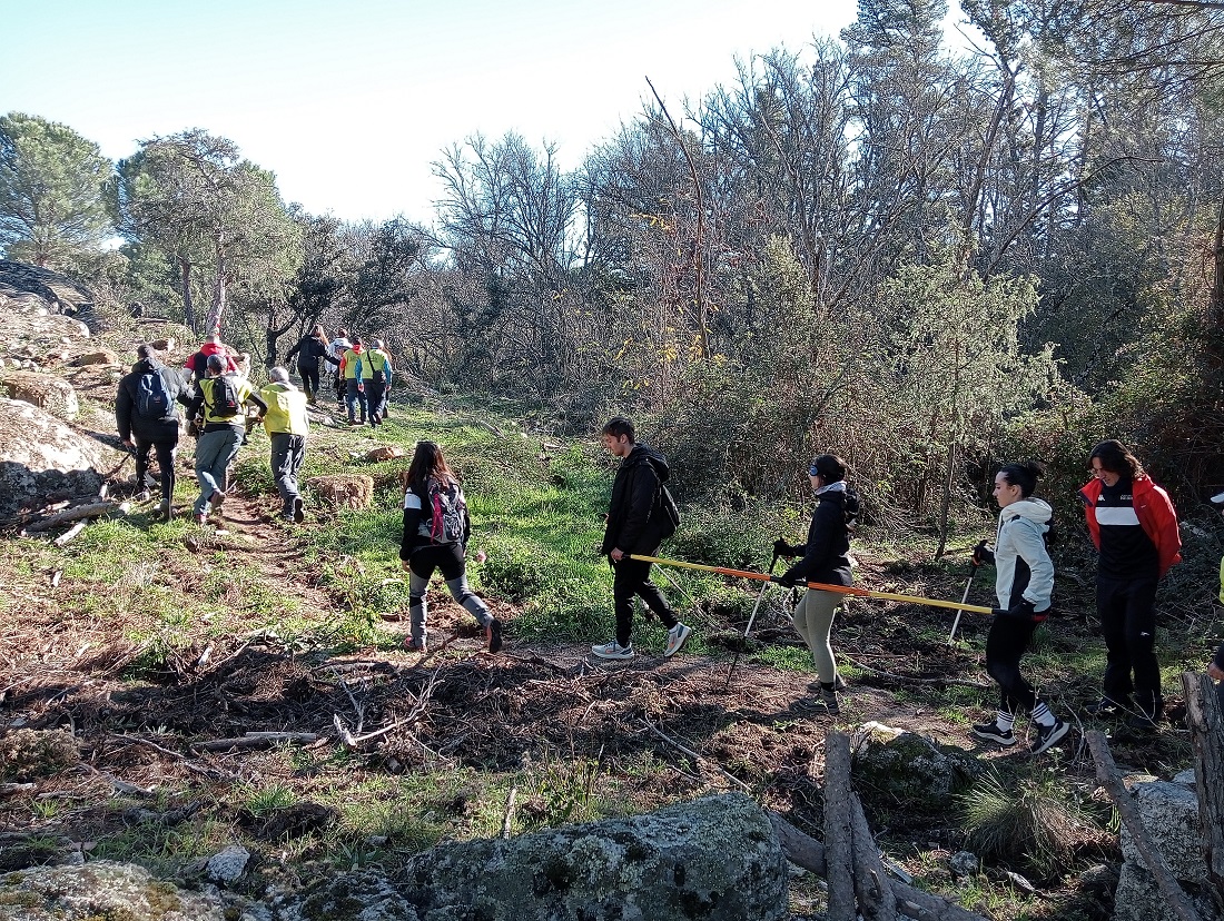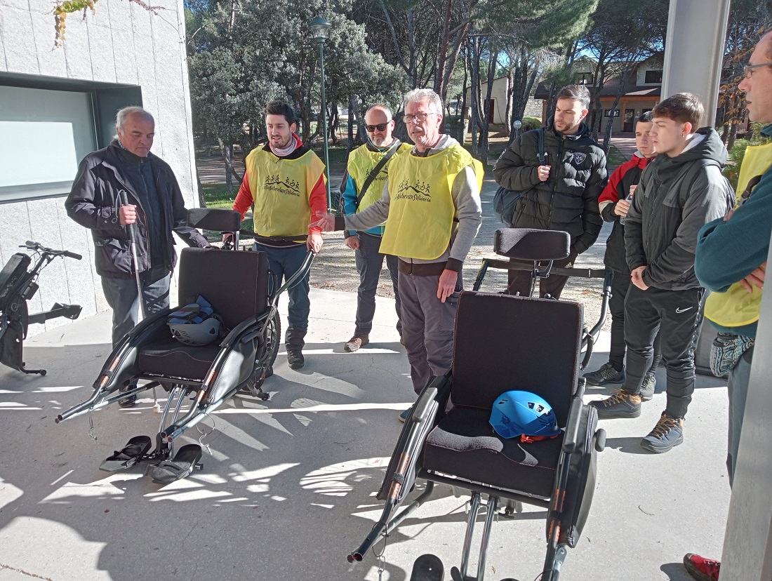 Con una ruta de dos kilómetros, balizada por cintas, que parte del Campus de Ciencia de la Vida en La Berzosa, la comitiva de una veintena de personas, tras recibir una información teórica, ponen en práctica el manejo de la barra direccional y la silla Joëlette, elementos que ayudan a personas con discapacidad visual severa o ciegas y a personas con movilidad reducida a vivir una aventura plena de senderismo y montañismo.