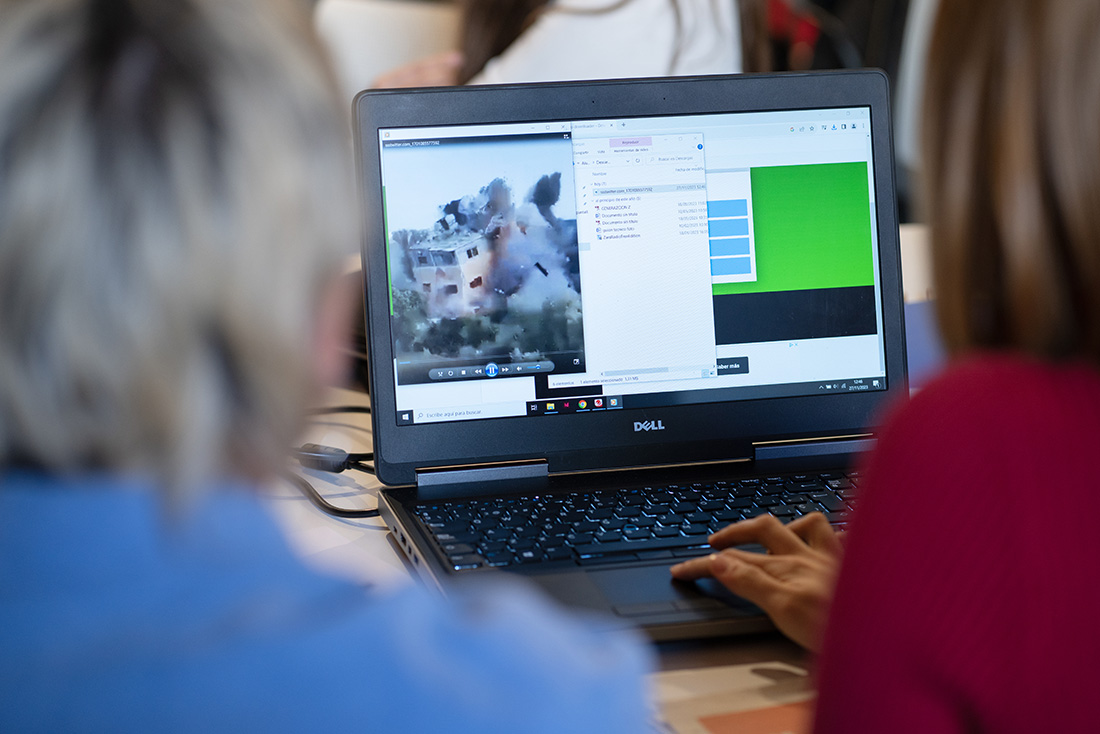 Para finalizar la jornada, Borja Díaz-Merry propuso una actividad a los estudiantes del máster en la que debían extraer un fotograma de un vídeo que él les compartió sobre un bombardeo y emplear la búsqueda inversa para comprobar si ese vídeo se correspondía con el lugar y el momento que le atribuía la información. Pudieron comprobar en escasos minutos que el vídeo era un bulo, viendo lo fácil que es desmontar una información fraudulenta y la tremenda importancia de esta práctica.