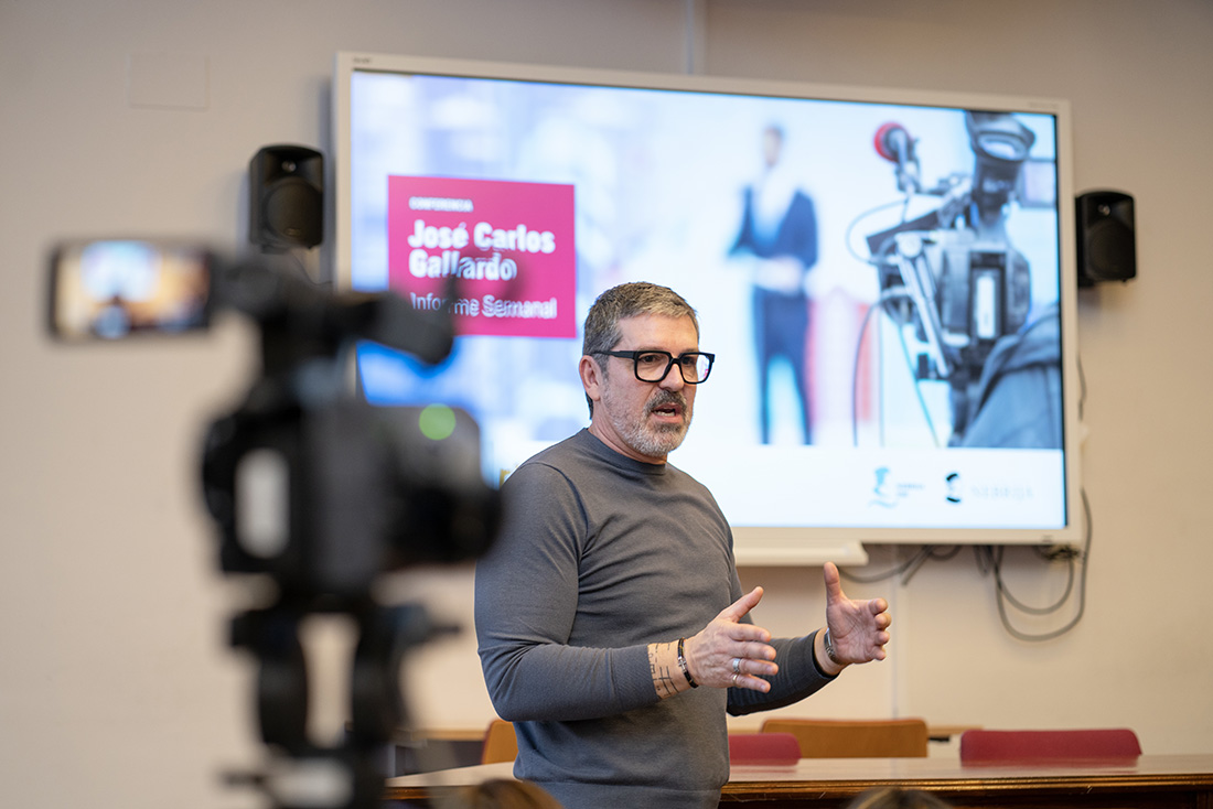 Todavía en dictadura, pero en un anhelo de cambio total, nació hace medio siglo Informe Semanal. Sus reportajes cocidos a fuego lento y su mirada sobre los grandes y pequeños temas que sacudían el mundo creó escuela entre periodistas, cámaras y realizadores. Sus imágenes y relatos, que no han faltado nunca a su cita en Televisión Española los sábados por la tarde, siguen alimentando la memoria de los españoles. En un viaje por el pasado y del presente del programa de reportajes más longevo de Europa, su director, José Carlos Gallardo, charló con los alumnos de los másteres y grados de la Facultad de Comunicación y Artes a lomos de una vorágine de preguntas, inquietudes, curiosidades y algún que otro titular: “En Informe Semanal, la libertad es tan importante como saber contarlo bien”.