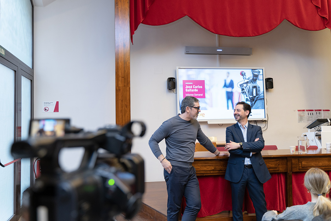 Antes de reconocer que “a veces” en Informe Semanal “tiran la toalla” ante una audiencia más joven “a la que le cuesta sentarse quince minutos seguidos a ver un reportaje”, José Carlos Gallardo hizo hincapié en el cuidado de todos los detalles a la hora de ejercer el periodismo y quiso dejar un mensaje de “abuelo cebolleta” dirigido a los estudiantes: “Vivid todo lo que podáis, leed y viajad mucho porque tenemos una profesión maravillosa”.