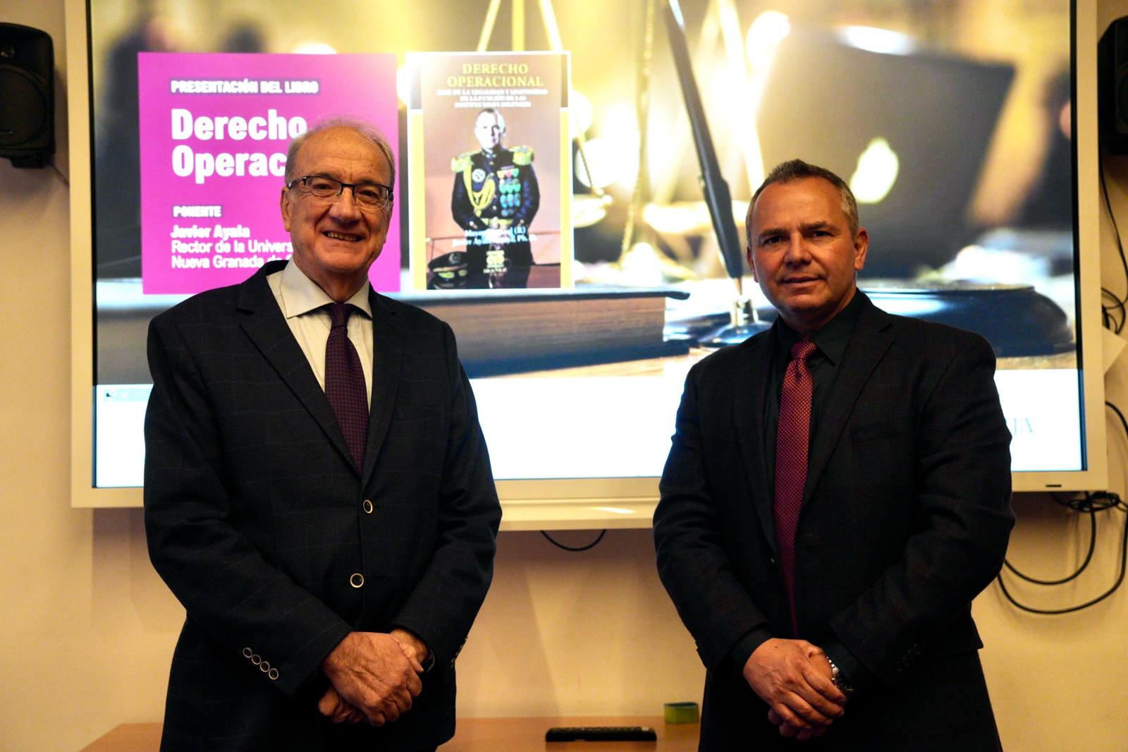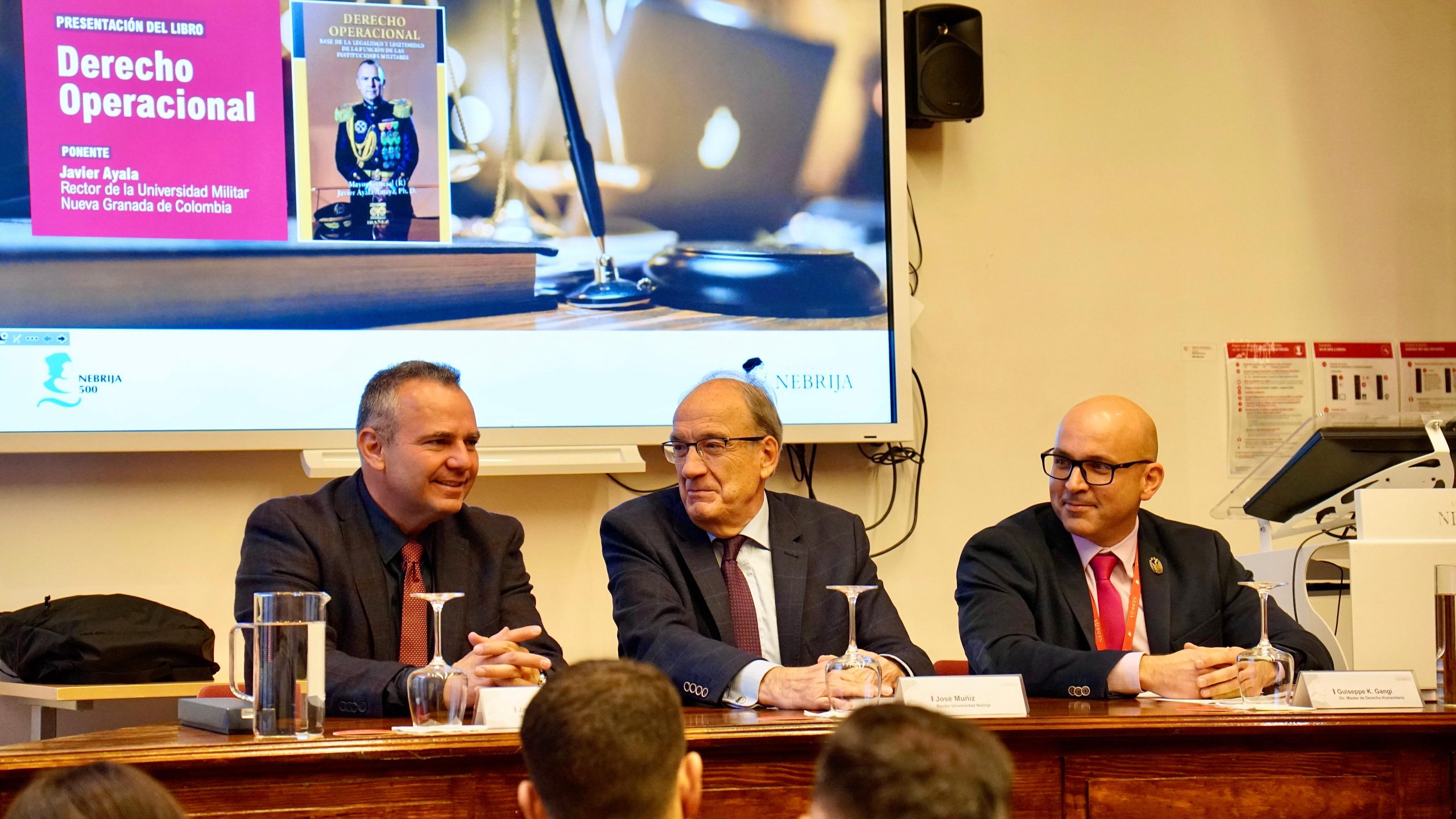 Javier Ayala, general del Ejército Nacional de Colombia, rector de la Universidad Militar Nueva Granada y alumni de la Universidad Nebrija ha visitado el Campus de Madrid-Princesa para la presentación de su libro Derecho Operacional: Base de la legalidad y legitimidad de la función de las instituciones militares. Ha estado acompañado y respaldado por José Muñiz, rector de Universidad Nebrija, y Giuseppe Gangi, director del máster en Derecho Internacional Humanitario, Derechos Humanos y Derecho Operacional. Javier Ayala ha querido aprovechar la oportunidad para expresar el aprecio de la Universidad Militar y el Ejército de Colombia por la Universidad Nebrija, institución que les abrió las puertas de Europa.
