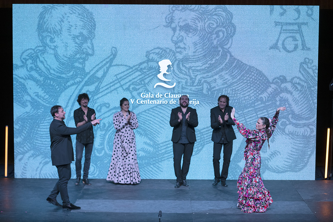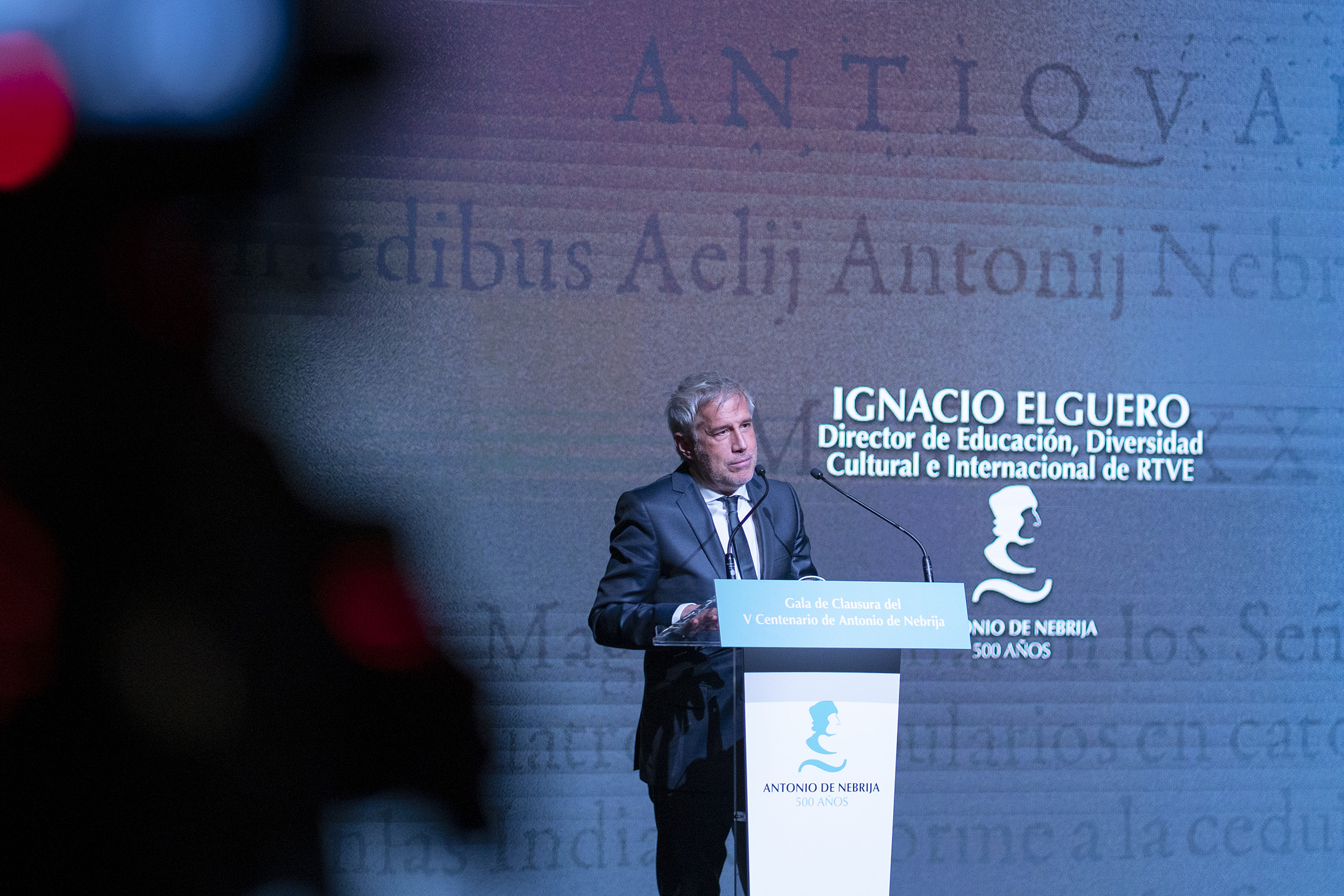 La gala de clausura del V Centenario contó con las intervenciones de la catedrática de Historia de la Lengua en la Universidad de Sevilla, Lola Pons; el director de Educación, Diversidad Cultural e Internacional de RTVE, Ignacio Elguero; y el presidente de la Comisión Interadministrativa del V Centenario de Antonio de Nebrija y rector de la Universidad Nebrija, José Muñiz. Fue una velada conducida por Aldara Pereira, de la Fundación Nebrija, que estuvo dedicada a la cultura y el humanismo, en la que se estrenó un adelanto del documental que RTVE ha realizado sobre Nebrija y también actuó el cantaor lebrijano José Valencia. Entre el público había representantes de las instituciones que han formado parte de la Comisión Interadministrativa.
