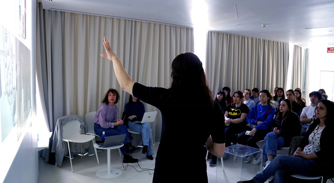Lorena Palomino, Amaya Hernández Sigüenza y la estudiante Alicia Aragón -en representación también de sus compañeras Alejandra Fernández, Andrea Abril, Apel (África Puente), Bárbara Cirujeda, Elisa Maglienti, Melina Fernández y Mónica Escartín- explicaron los pormenores del proceso en el taller ¿Cómo reinterpretar una obra de arte a través de las nuevas tecnologías/diseño digital? dentro de la programación del Madrid Design Festival, la gran cita anual del diseño de Madrid, que se celebra hasta el 31 de marzo en la Institución Libre de Enseñanza.