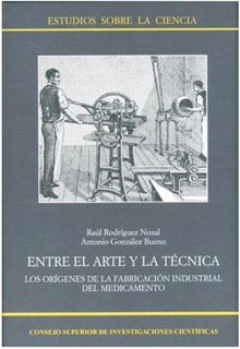 El libro Entre el arte y la técnica: los orígenes de la fabricación industrial del medicamento describe el origen y primer desarrollo de la industria del medicamento en España y la compara con países como Alemania, Inglaterra, Estados Unidos o Francia.