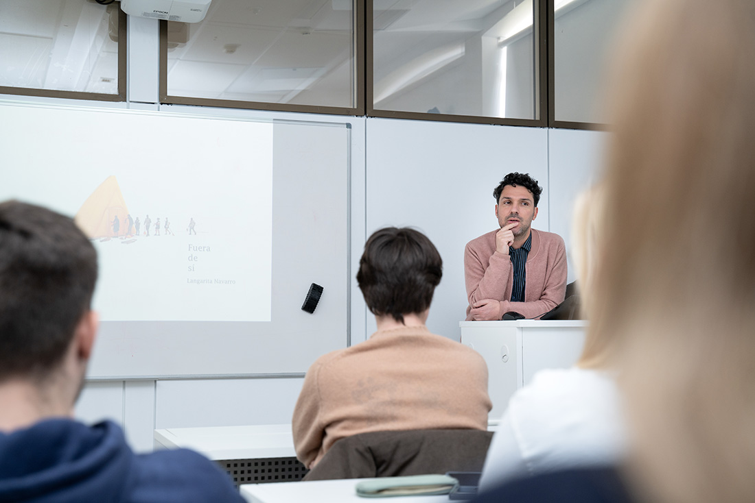 Lo duro y lo blando, “el busto y el pellejo”: los dos puntos de vista de la arquitectura. Esta antítesis, que en la mayoría de las veces convive en el mismo lugar, habita en las mentes de María Langarita y Víctor Navarro desde que fundaron su estudio hace casi veinte años al terminar la carrera. Sobre este planteamiento y su ejecución de “pellejos” diserta Navarro en una de las sesiones a los que nos tiene acostumbrados Fernando Moral, el director del Departamento de Arquitectura de la Universidad Nebrija, esta vez acompañado del profesor Miguel Guzmán.