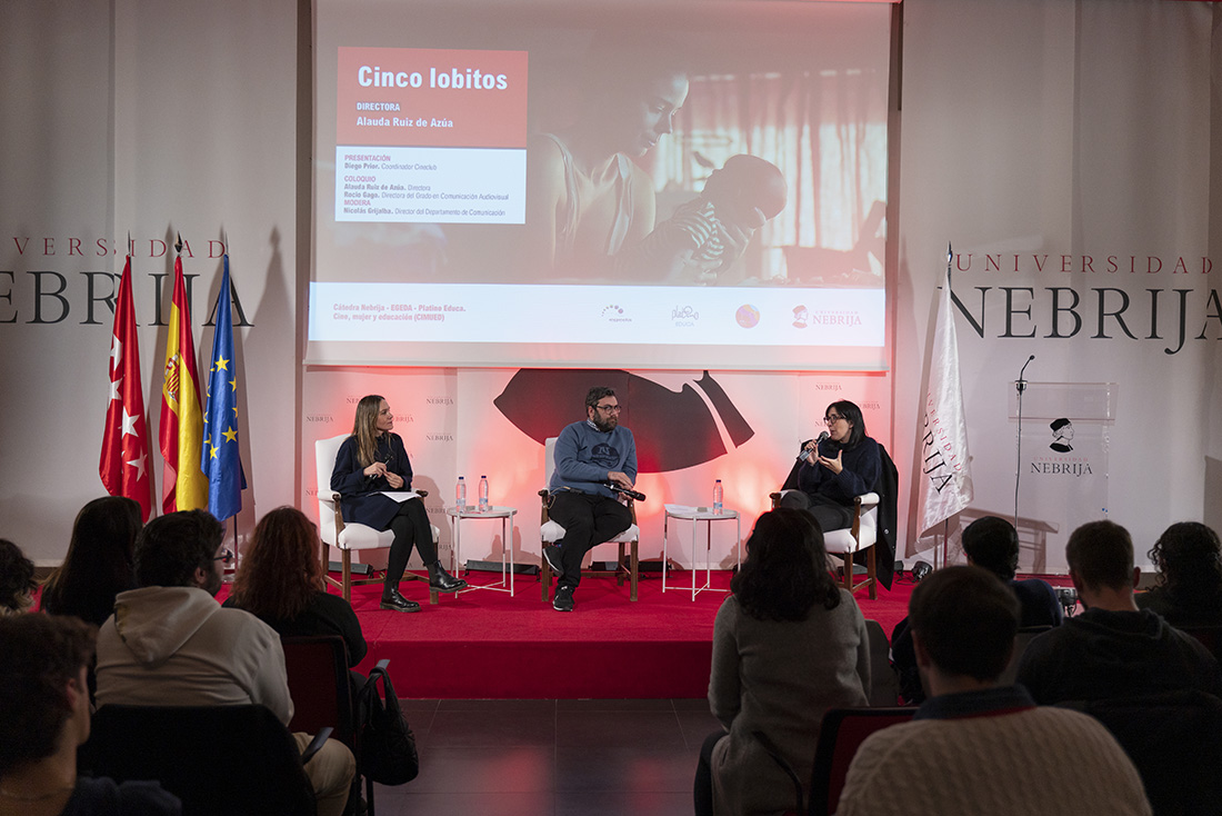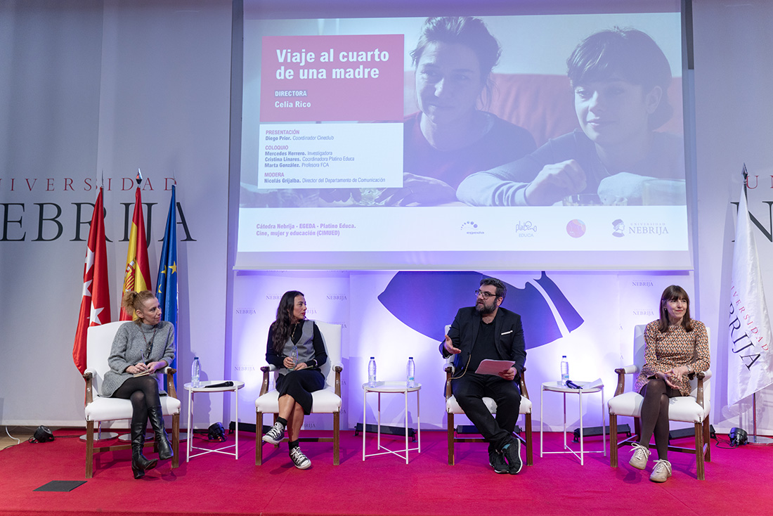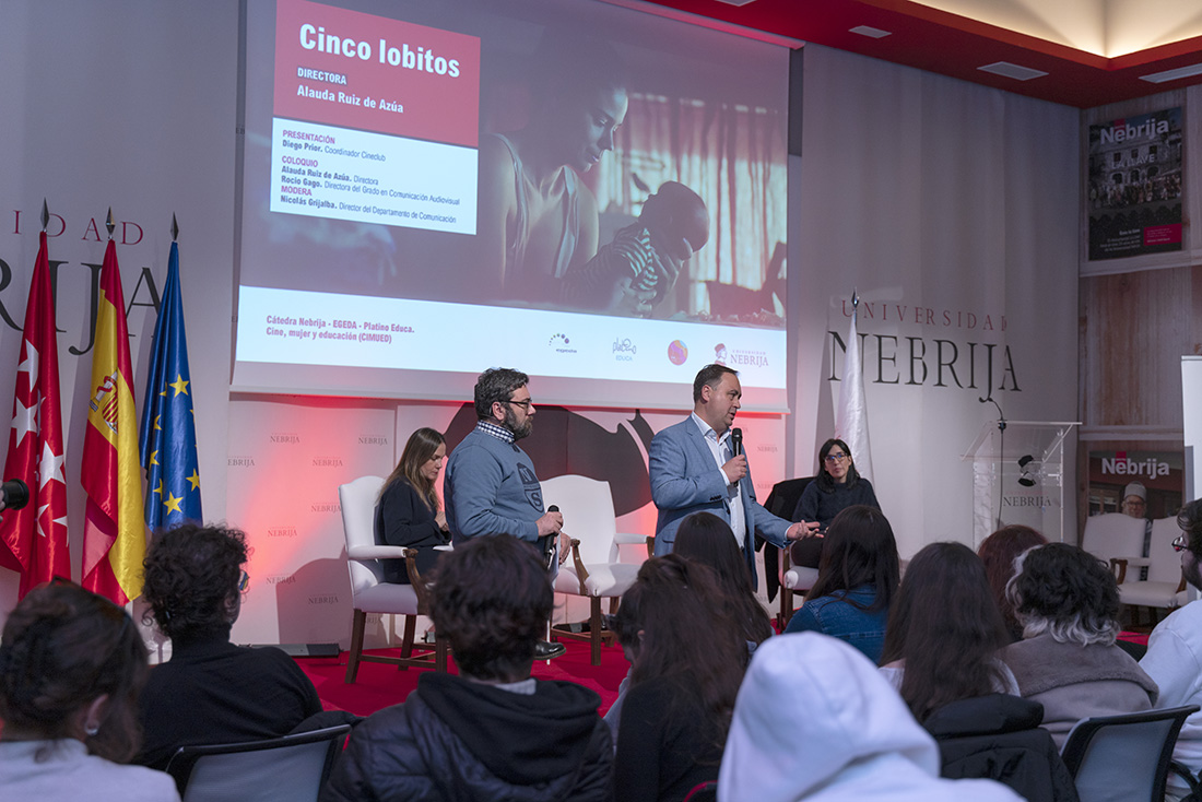 El I Ciclo Cine, Mujer y Educación Ellas dirigen, enmarcado en la Semana de la Mujer de la Universidad Nebrija y en el Cineclub de la Facultad de Comunicación y Artes, programó los días 4, 5 y 6 de marzo las proyecciones de tres cintas españolas dirigidas por mujeres (El Olivo, de Icíar Bollaín; Viaje al cuarto de una madre, de Celia Rico; y Cinco lobitos, de Alauda Ruiz de Azúa) y coloquios con académicos, investigadores, críticos y creadoras. Las sesiones, celebradas en el Campus de Madrid-Princesa, inauguraron las actividades de la recién creada Cátedra de Cine, Mujer y Educación (CIMUED).