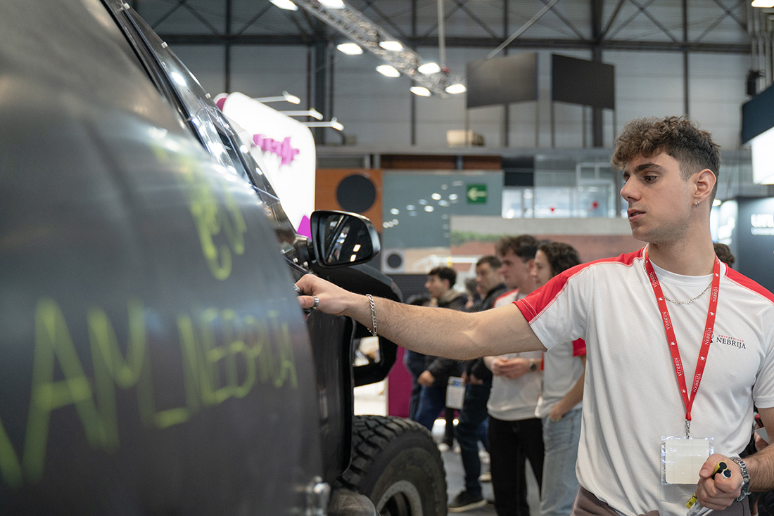 En la jornada inaugural las actividades se sucedieron en el espacio de la Universidad Nebrija: una pasarela de modelos profesionales con conjuntos elaborados por los alumnos del Grado en Diseño de Moda, un programa de radio en directo presentado por el profesor Eduardo Castillo, la decoración temporal del nuevo vehículo BV2 del proyecto Nebrija to Dakar, y la exhibición de la moto desarrollada por los futuros ingenieros para competir en el campeonato internacional Motostudent que se celebrará en Aragón en 2025. Los profesores y alumnos como Pablo Cid (Ingeniería del Automóvil) e Irene Vera (Ingeniería Biomédica) se afanaban en dar contexto a estos proyectos ante las preguntas de los futuros universitarios que se interesaban por la oferta de la Universidad Nebrija.