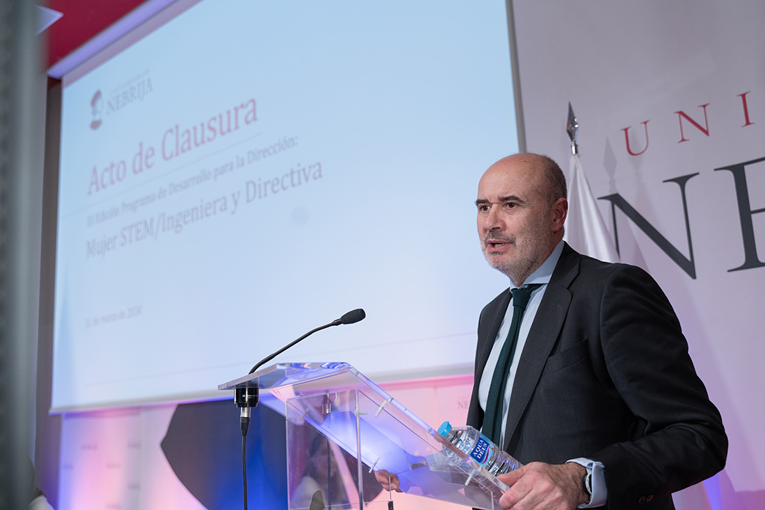 El acto de clausura del programa “Mujer STEM, Ingeniera y Directiva” contó con la participación de Luis Díaz Marcos, vicerrector de Ordenación Académica y Profesorado de la Universidad Nebrija; y de la representante de la promoción, Esther Moreno Cano, de Gestión de Proyectos en Talgo.